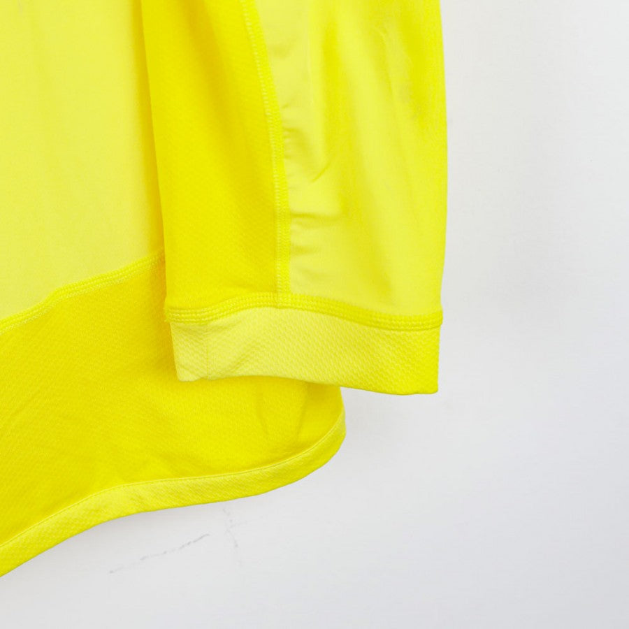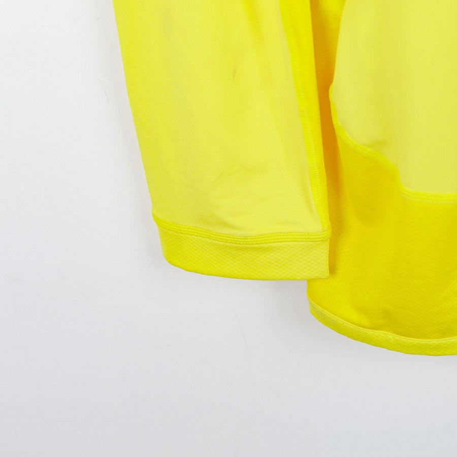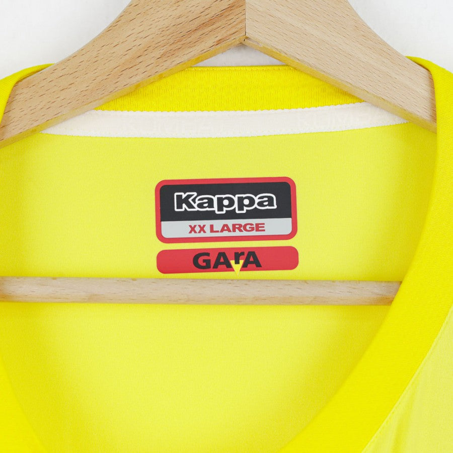 The official Napoli goalkeeper jersey for the 2017/2018 season, produced by Kappa, features a vibrant yellow design with light blue accents. The club crest is stitched on the chest, alongside the commercial sponsor Lete at the center. Its minimalist round collar ensures comfort, while the "Gara" fabric offers top performance. This XXL jersey is a must-have for collectors and fans reliving one of Napoli’s most exciting seasons.