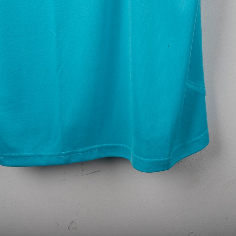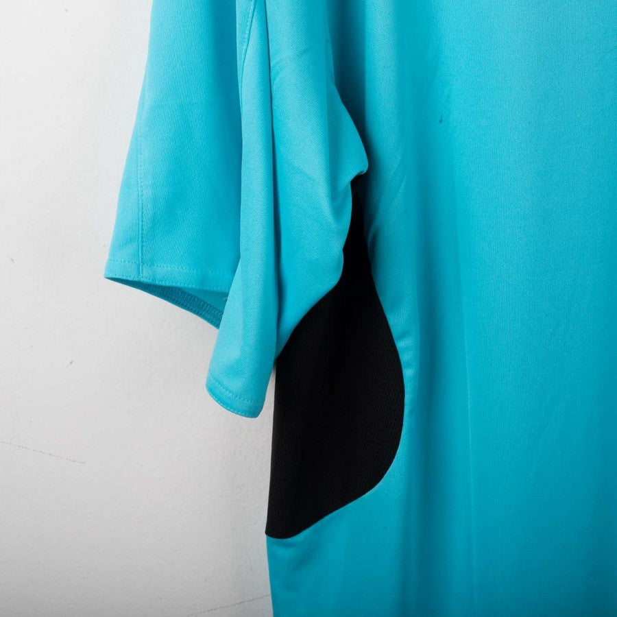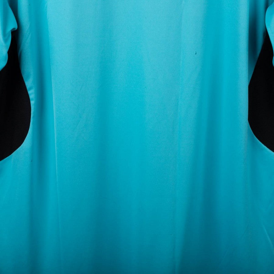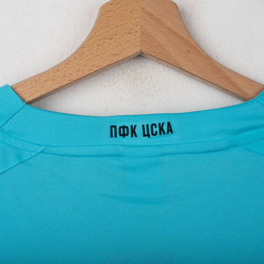 CSKA Moscow goalkeeper shirt from the 2010/2011 season, made by Reebok. Neon blue with black inserts on the sides and shoulders. Black Reebok logo on the right chest, embroidered CSKA crest on the left. Crew neck with inner “PFC CSKA” text. Loose fit, typical of goalkeeper kits. Size XL. Original shirt from the season, made of lightweight technical fabric for comfort and breathability during matches.