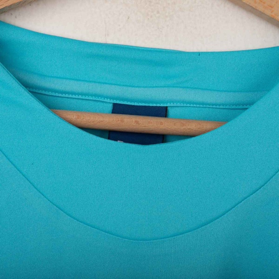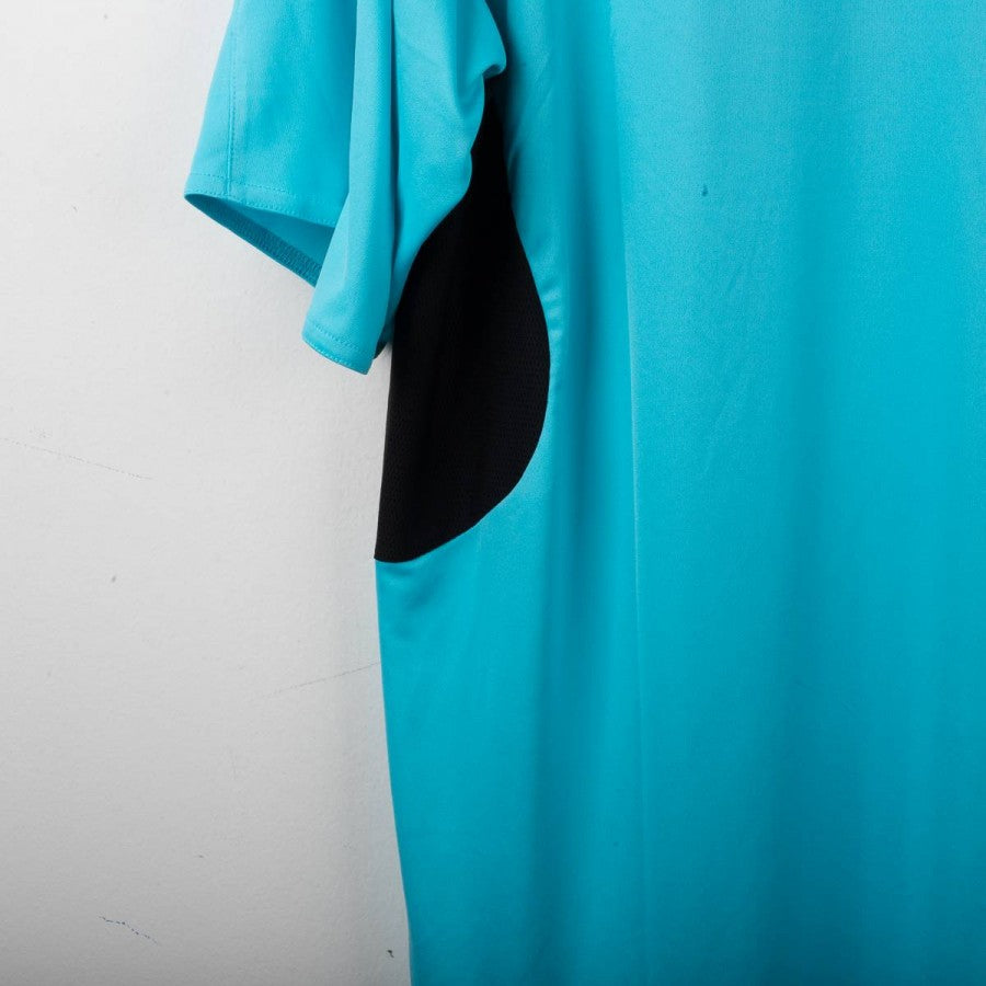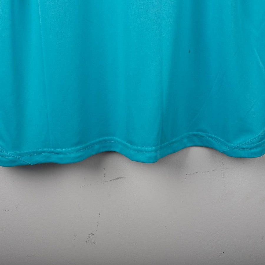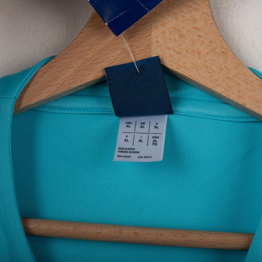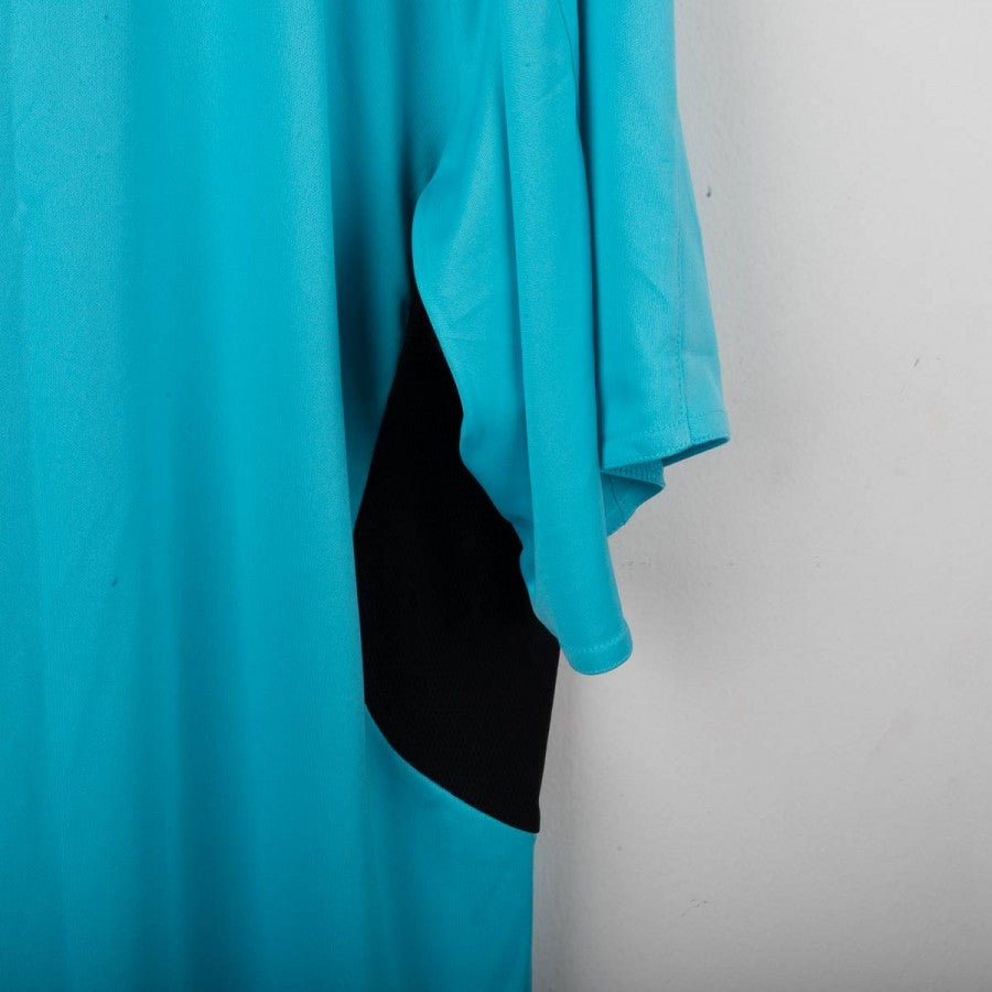 CSKA Moscow goalkeeper shirt from the 2010/2011 season, made by Reebok. Neon blue with black inserts on the sides and shoulders. Black Reebok logo on the right chest, embroidered CSKA crest on the left. Crew neck with inner “PFC CSKA” text. Loose fit, typical of goalkeeper kits. Size XL. Original shirt from the season, made of lightweight technical fabric for comfort and breathability during matches.