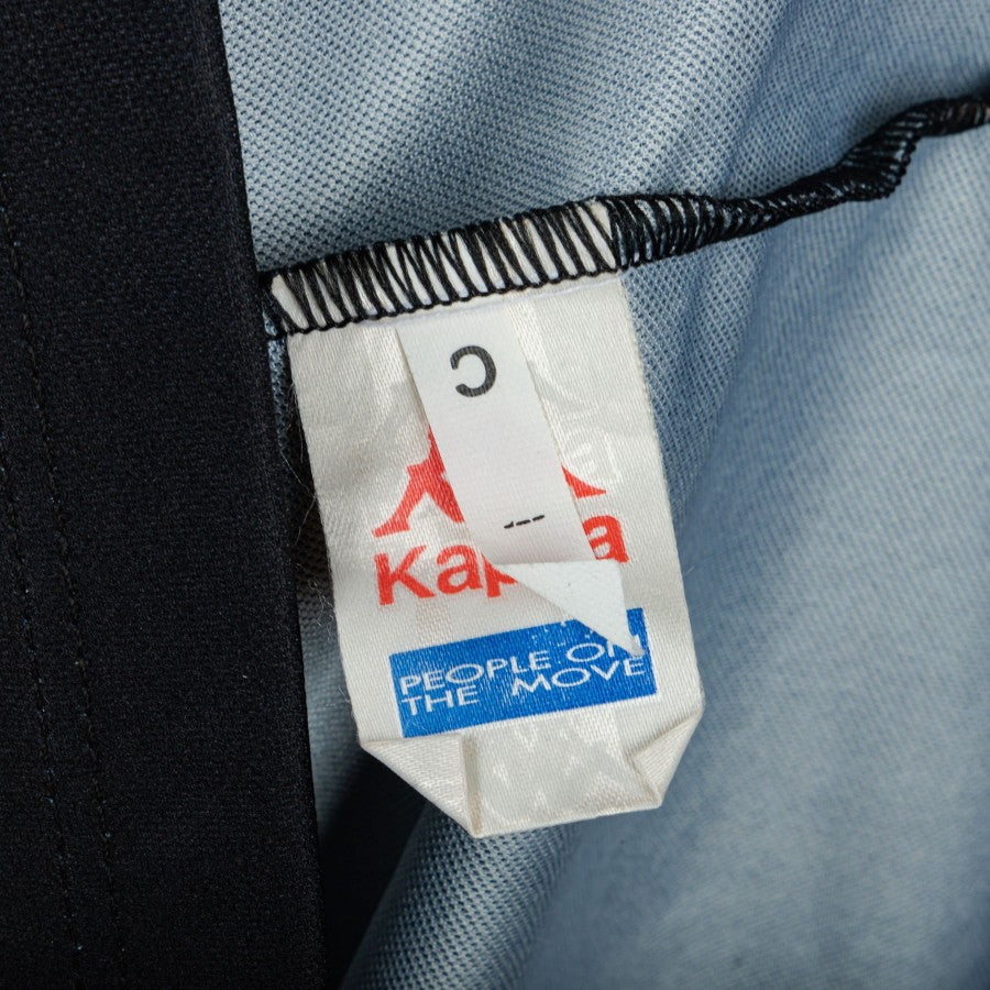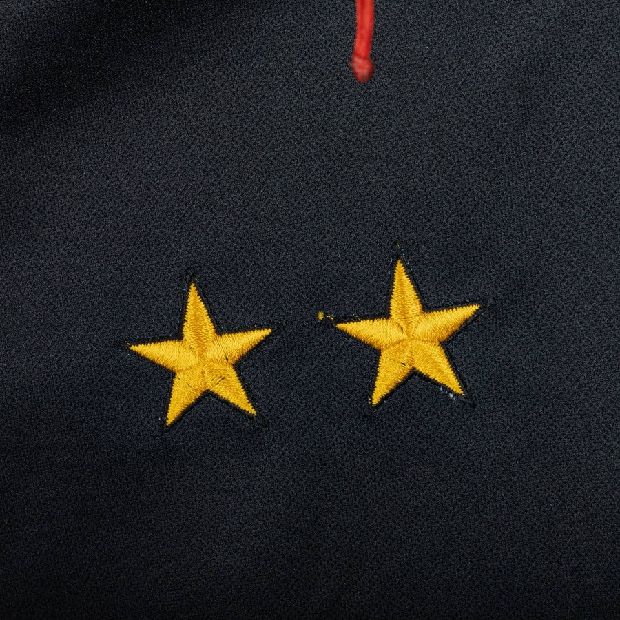 Goalkeeper jersey in black with grey and white details. Long sleeves and a polo collar. The jersey is produced by Kappa, featuring the two men's logo embroidered on the right. The Juventus patch is sublimated at the center of the neckline. The words "European South American Cup 1996" are painted along the shoulder and left arm. The "RAMPULLA 12" logo is printed on the back.