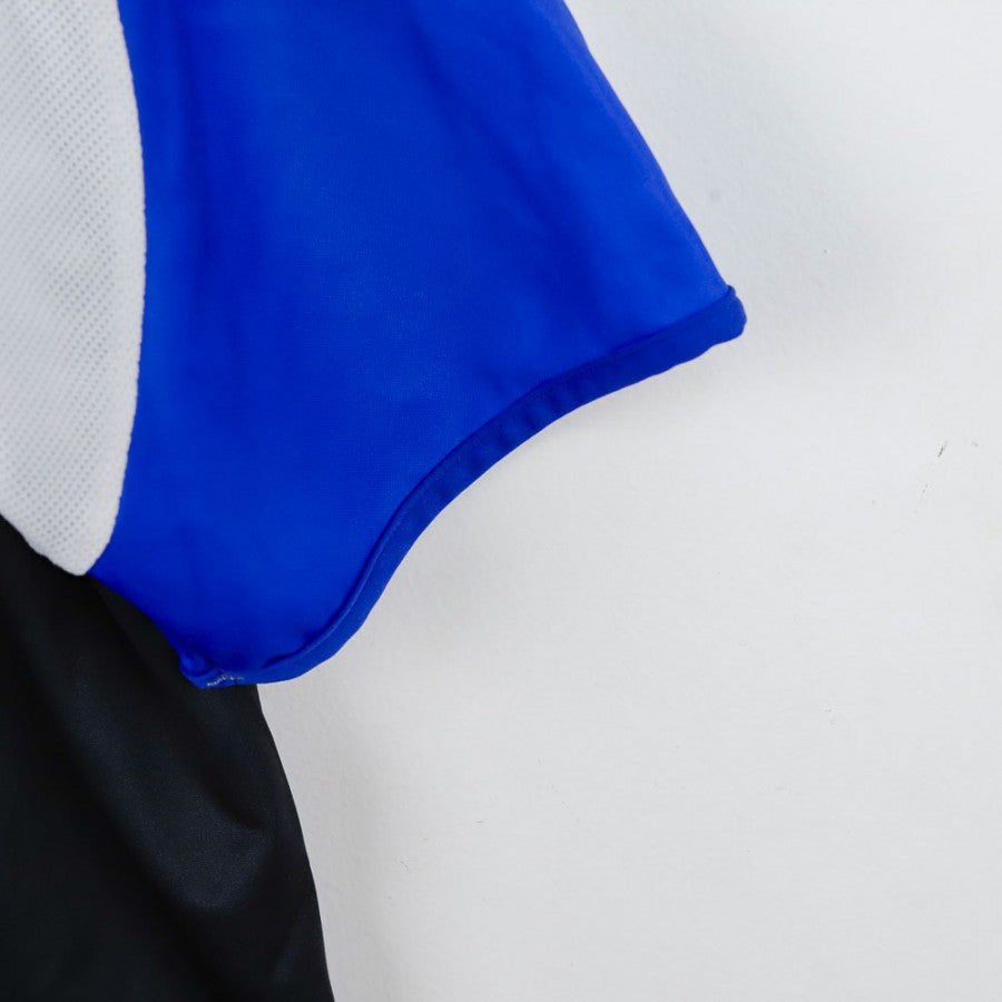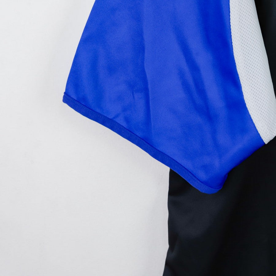Official training jersey of Atalanta from the 2006/2007 season, manufactured by Asics. The design features a black and blue color combination with white accents on the shoulders and sleeves. The chest displays the Asics logo, Atalanta crest, and main sponsor Sit-in Sport Creberg. The back also features the sponsor branding and Asics logo. Made from breathable technical fabric, this jersey offers comfort and durability, making it a great collectible for Atalanta fans.