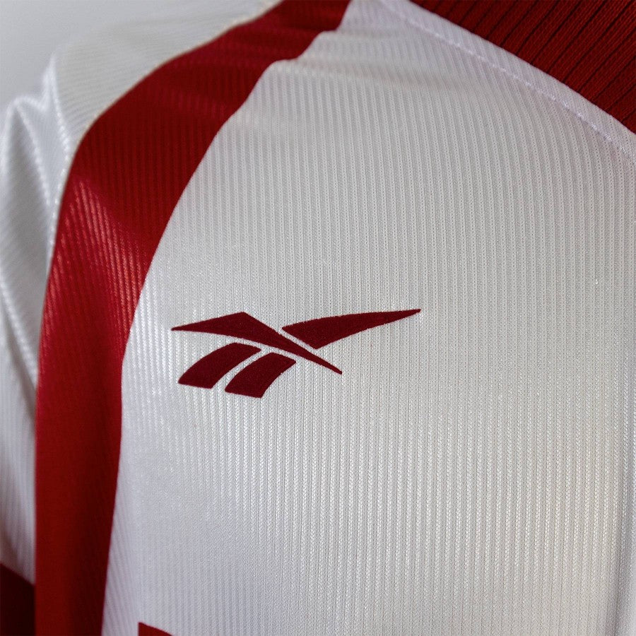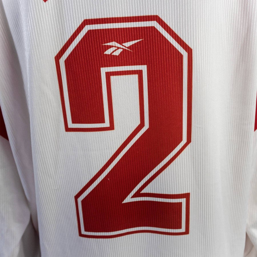 Vintage shirt in excellent condition, patches, weft and collar in order, slight stains on the front of the garment, technical sponsor Reebok, commercial sponsor Firestone.