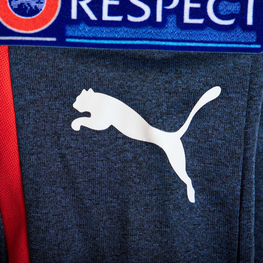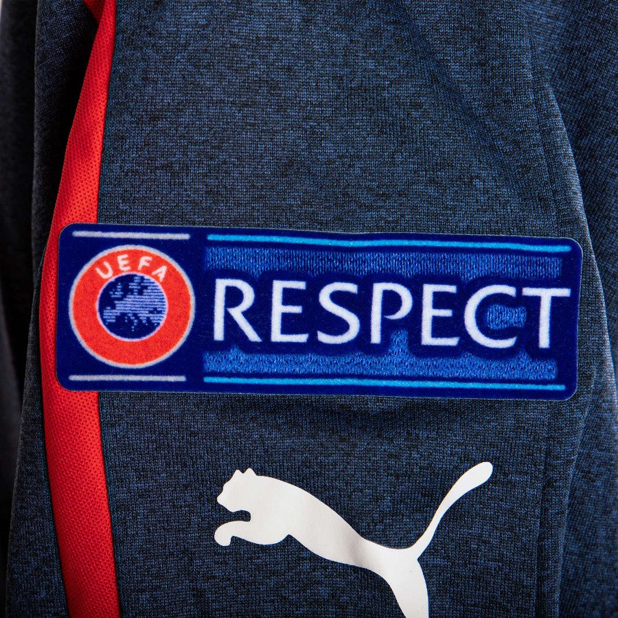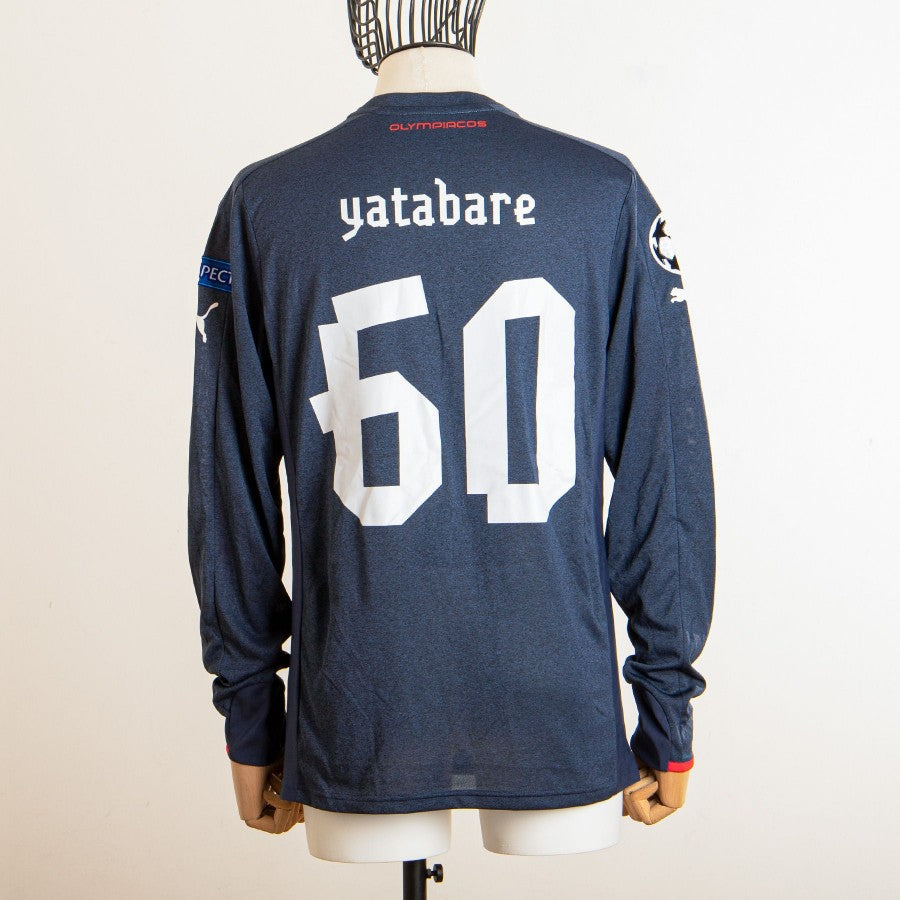 Olympiacos Away match shirt 2013/2014 season by Sambou Yatabare. On the front is sewn the team logo on the heart side and is applied Puma logo on the right side. On the back are printed lettering YATABARE and number 60. On the right sleeve is the UEFA patch and on the left sleeve is the RESPECT patch. The logo of the commercial sponsor is printed in light plastic.