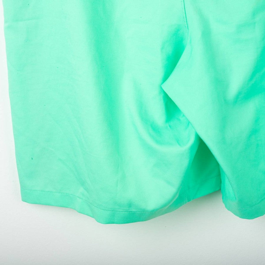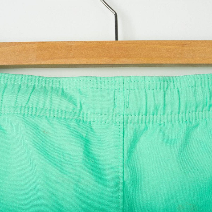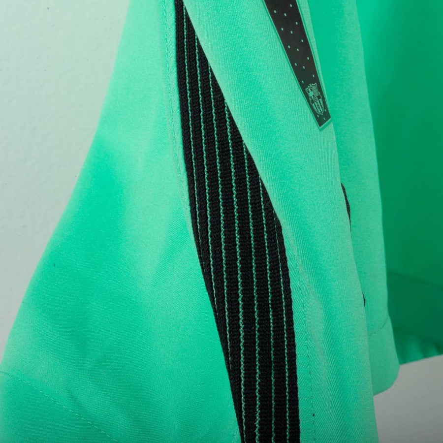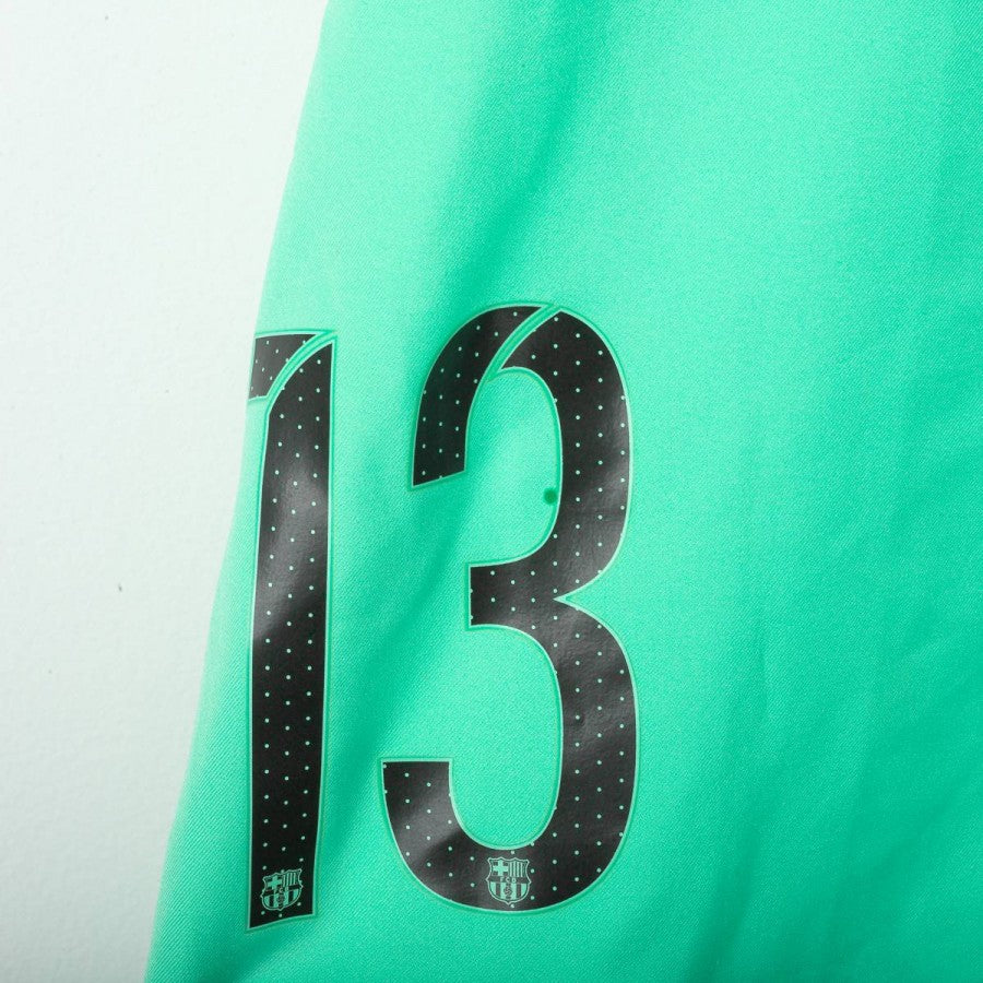 Barcelona away shorts from the 2016/2017 season, made by Nike. Aqua green base with black side stripes. Embroidered Nike logo and stitched Barcelona crest. Number 13 printed on the leg. Original vintage piece, size L.