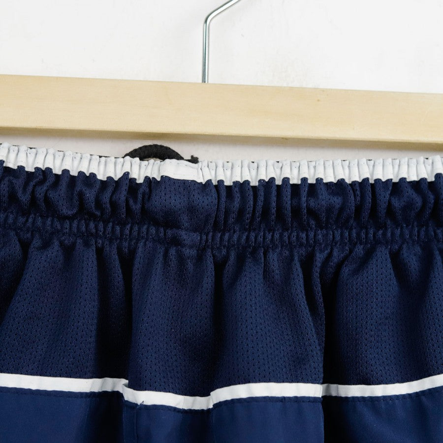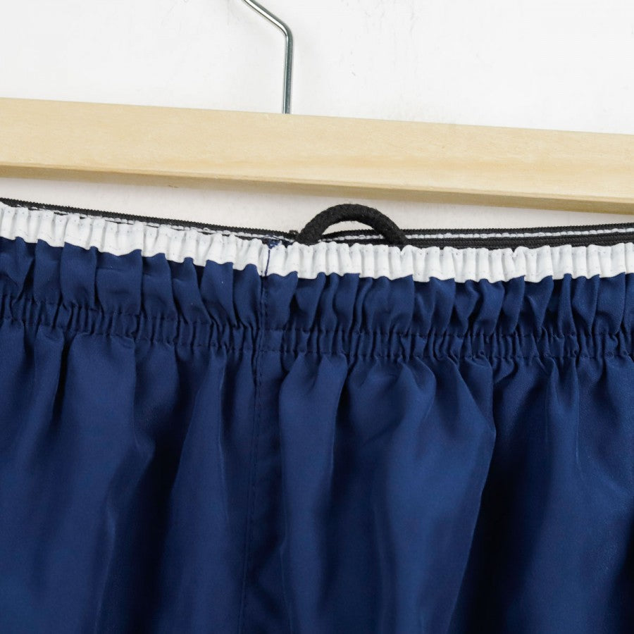 Napoli away shorts from the 2003/2004 season, made by Legea. Navy blue color with white inserts and trims. Embroidered Legea logo and stitched SSC Napoli crest on the right leg. Number 21 applied in white print on the left leg. Size XL.