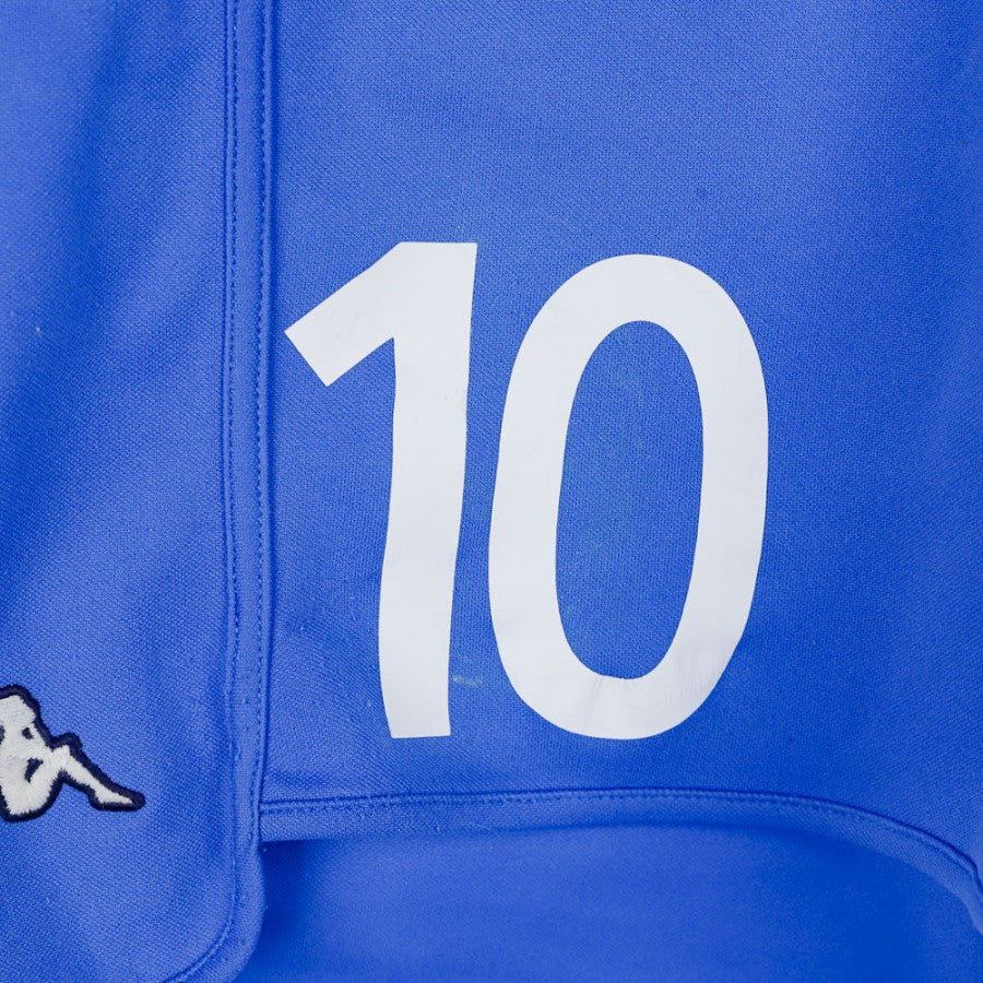 2002 Home Italy Shorts Kappa N10, crafted by technical sponsor Kappa in the iconic blue color of the Italian National Team. Features the number 10 on the left leg and the Kappa logo on both sides. Size XL. These shorts recall the dramatic 2002 World Cup campaign, marked by memorable moments and controversial decisions involving the Azzurri.