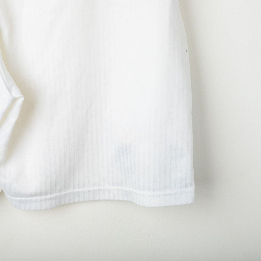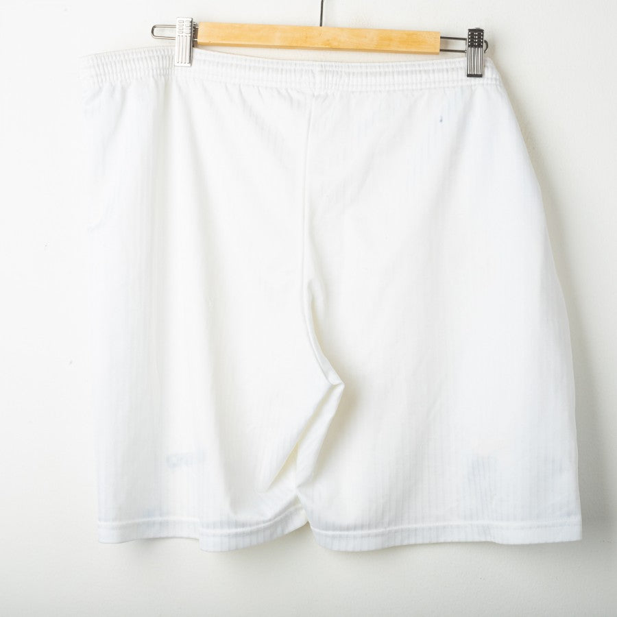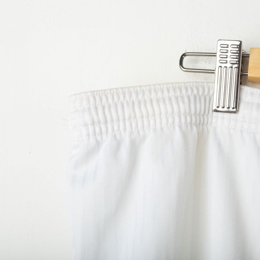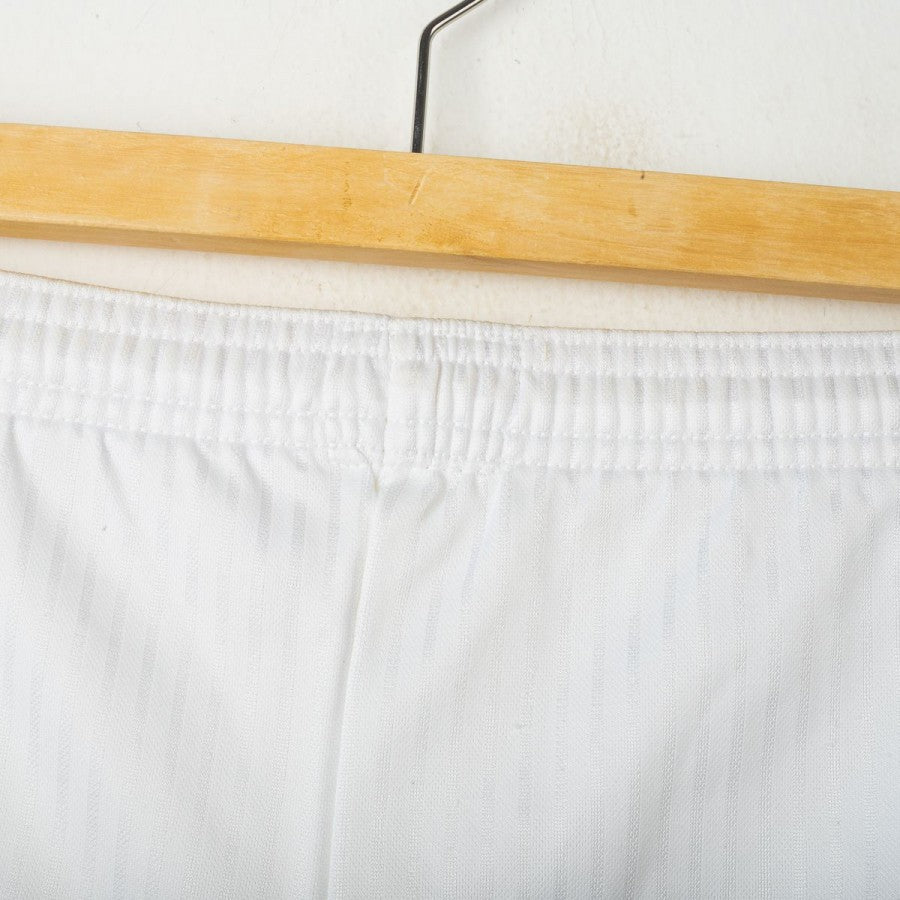 Lazio home shorts from the 1997/1998 season, made by Umbro. White with light blue side stripes edged in navy. Navy embroidered Umbro logo on the right leg, full-color embroidered Lazio crest on the left leg. Elastic waistband for a comfortable fit. Original match shorts from the transitional season between Zeman and Eriksson, with Lazio competing at the top in Serie A and UEFA Cup.
