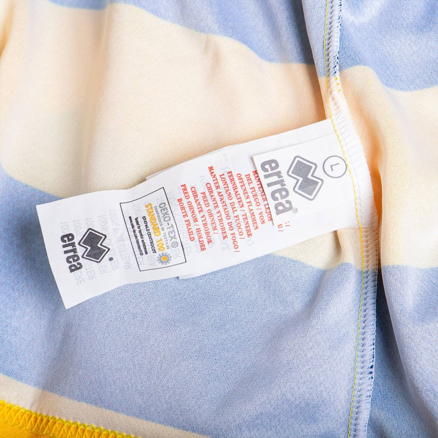 Home match jersey of Parma midfielder Mattia Sprocati 2018/2019 season. On the front is sewn Parma logo on the heart side and on the sleeves are sublimated ERREA logos. On the back are printed lettering SPROCATI and number 93. On the back neck is sewn the lettering PARMA CALCIO and on the right sleeve there is the patch Serie A Tim. All the logos of the commercial sponsors are printed in light plastic.