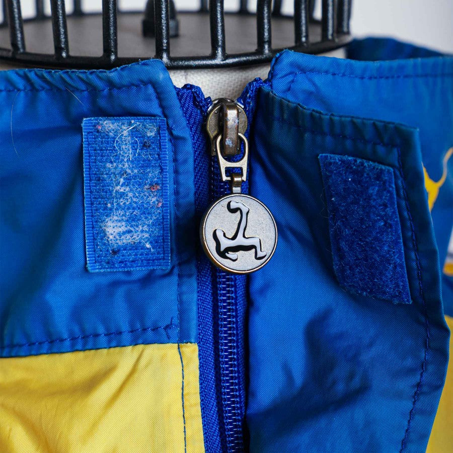 Parma rain jacket made by Puma for the 1997/1998 football season.The colors retain their original brilliance The club crest is applied on the heart side. The commercial sponsor is applied on the right side. The technical sponsor is applied on the back and on the sleeves.