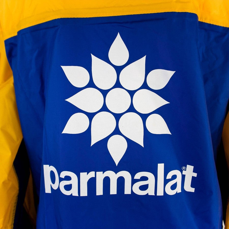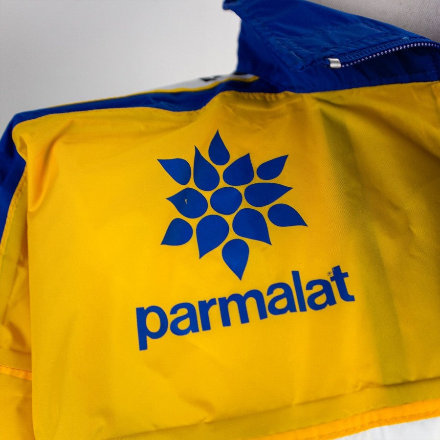 Parma rain jacket made by Puma for the 1997/1998 football season. Product of the 90s in excellent condition, with stamen and logos in perfect condition. Thermo-applied sponsor logos.