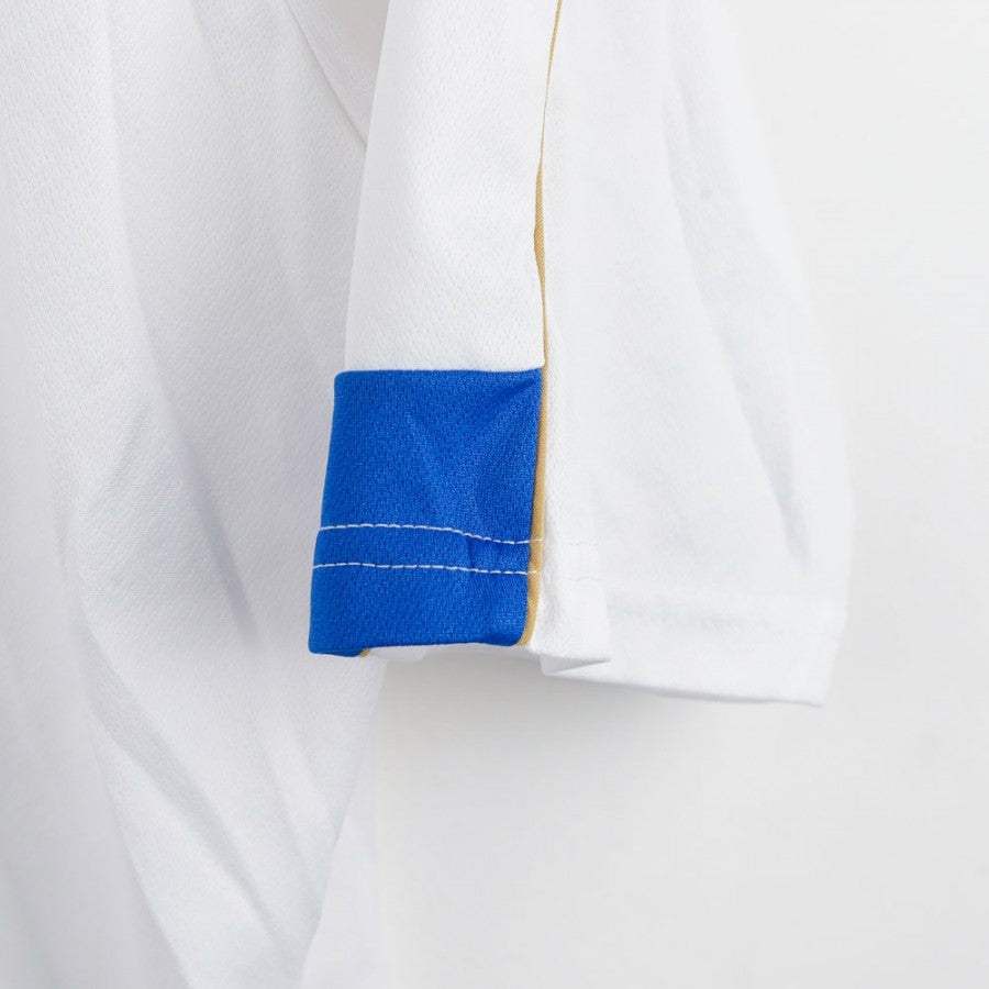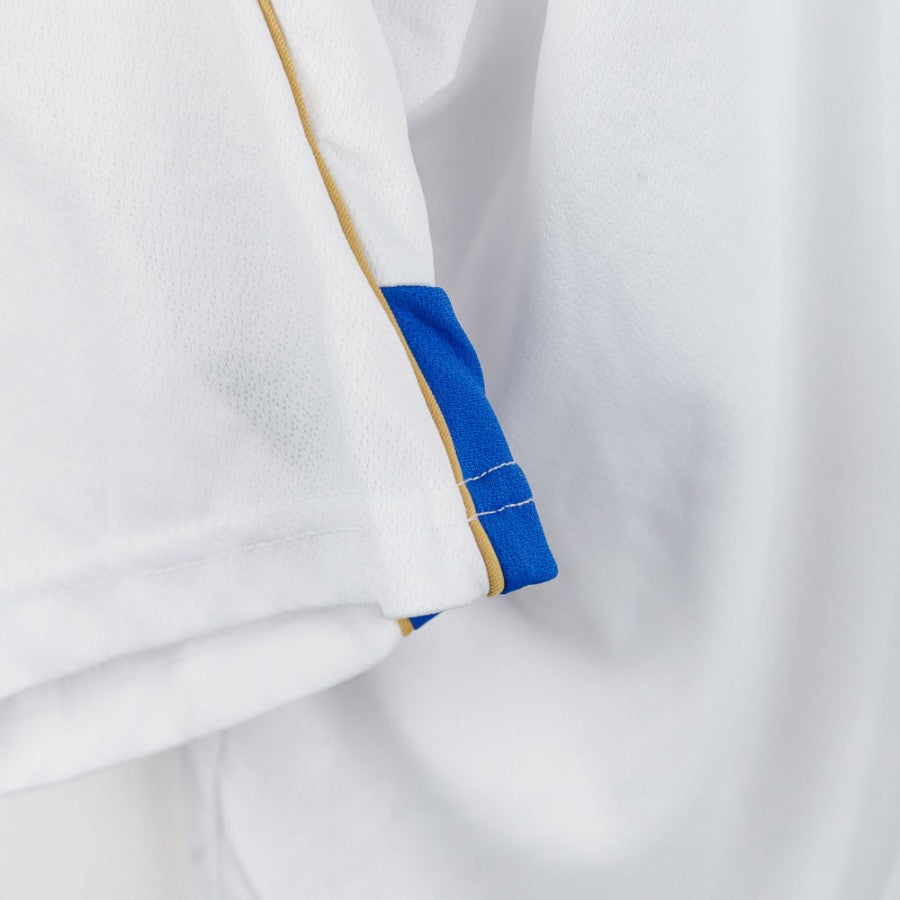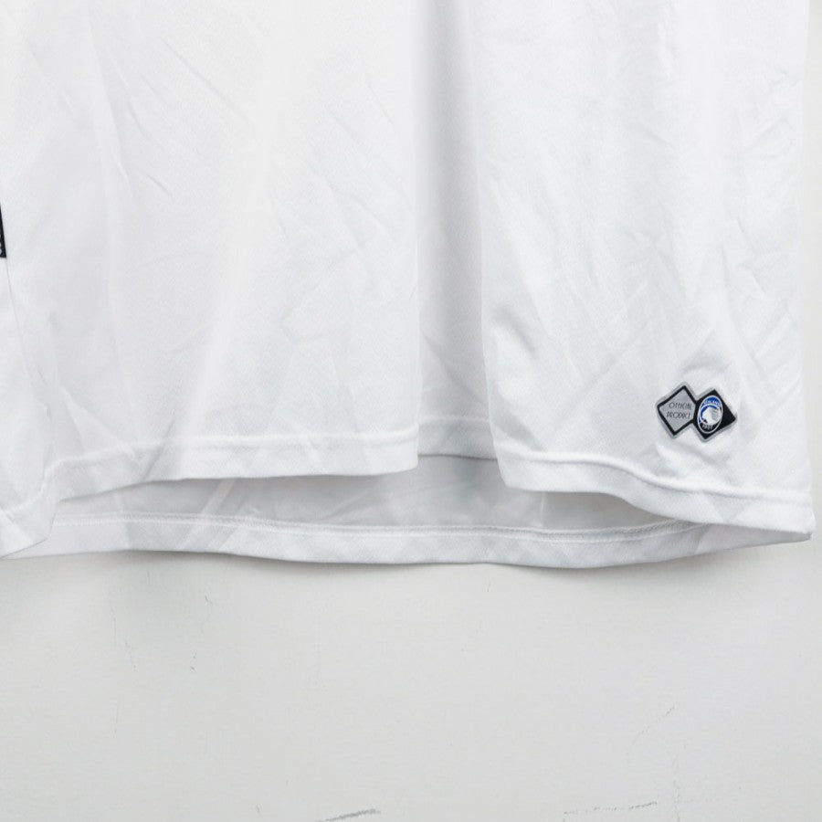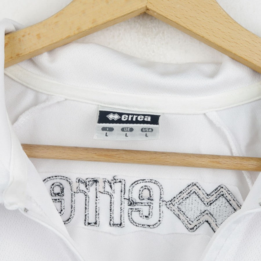 Official Atalanta polo from the 2007/2008 season, made by Errea. White with blue and gold details, featuring the Errea logo, Atalanta crest, and sponsors Sit-In Sport and Creberg on the front. The Errea logo is also present on the back. Size L.
