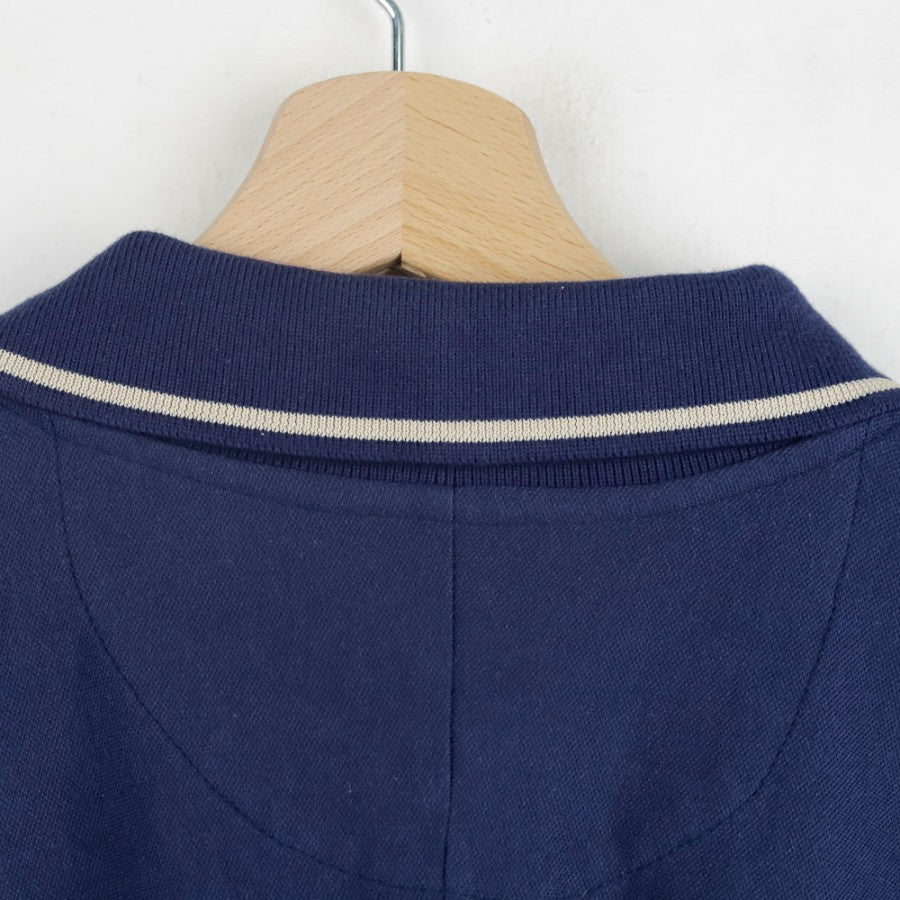 Official Brescia Calcio polo shirt from the 2005/2006 season, produced by technical sponsor Kappa. Navy blue with a two-button collar, it features the embroidered Kappa logo on the chest and the club crest on the left side. The right sleeve displays the Banco di Brescia commercial sponsor logo. Size: S.