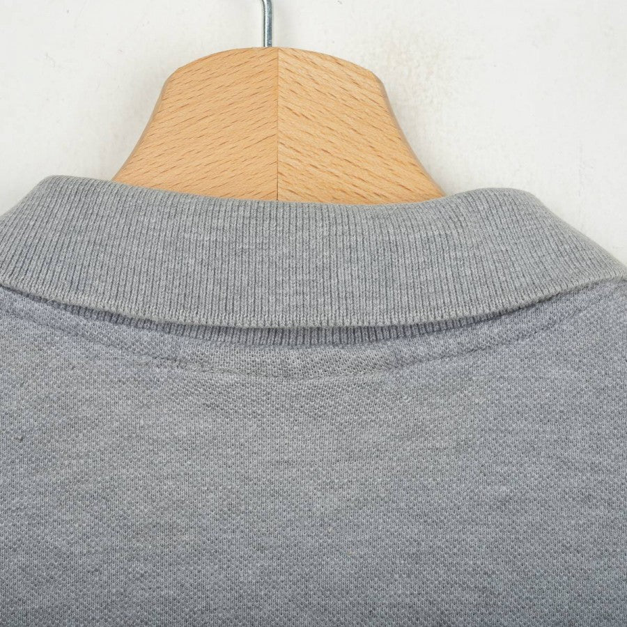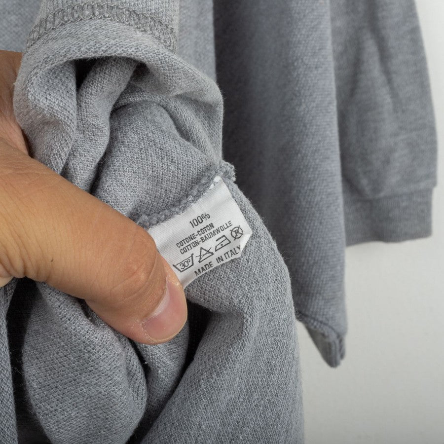 Juventus polo shirt from the 1995/1996 season made by Kappa. Grey melange cotton with embroidered Kappa logo on the right chest and stitched Juventus crest with two golden stars on the left chest. Polo collar with white lace closure. Regular fit. Size M. Official Kappa product, Juventus technical supplier.