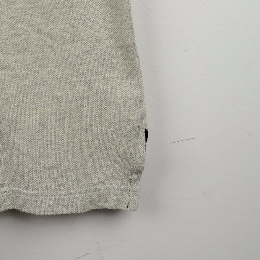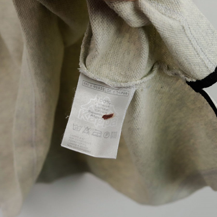 1998/1999 Juventus Kappa Polo Shirt. Official model crafted by Kappa for the 1998/1999 season, in a stylish heather grey with black-trimmed collar and cuffs. The front features an embroidered Kappa logo, a "JUVENTUS" patch, and the club crest with two gold stars. Size L.