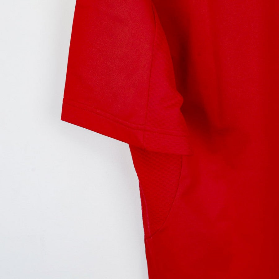 Official US Lecce polo from the 2012/2013 season, produced by technical sponsor Asics. The design features a red base with yellow details on the shoulders and collar, representing the club's iconic colors. The Lecce crest is displayed on the left chest, while the Asics logo is embroidered on the right. The central "Salento d'amare" sponsor logo promotes local tourism. This polo was worn by the team during travel and official events, making it a favorite for fans.