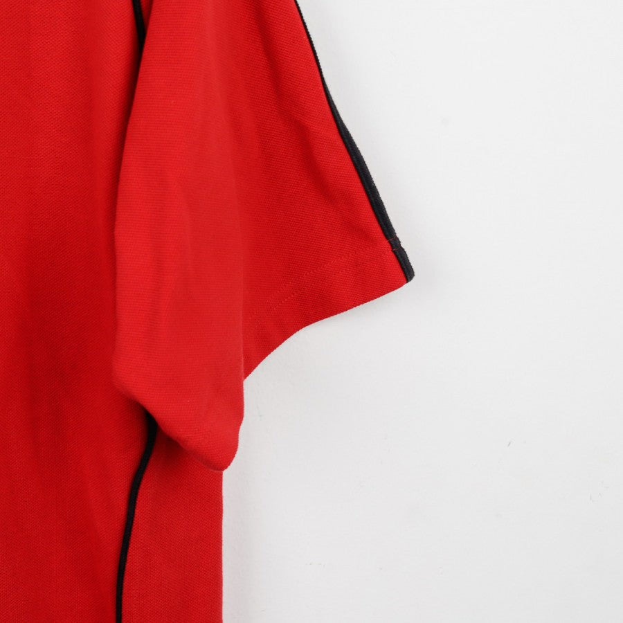 2006/2007 Milan Adidas Polo Shirt, size S, featuring the club crest, Adidas logo, and Bwin sponsor on the chest. The shirt comes in a vibrant red with black side panels and Adidas’ iconic three stripes along the shoulders. A commemorative Milan World Champion logo is present on the back just below the collar. This official polo shirt is from the legendary 2006/07 season, which saw AC Milan lift their seventh UEFA Champions League trophy in Athens, defeating Liverpool with standout performances from Kaká and Inzaghi.