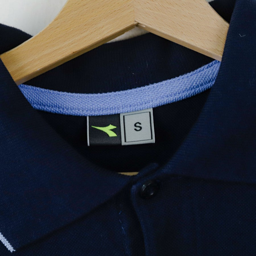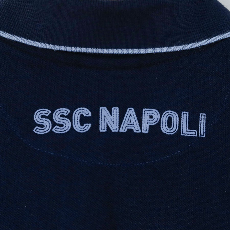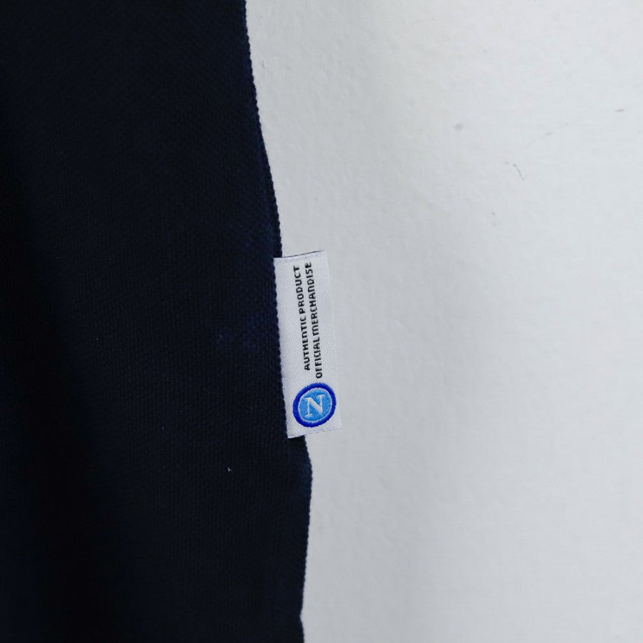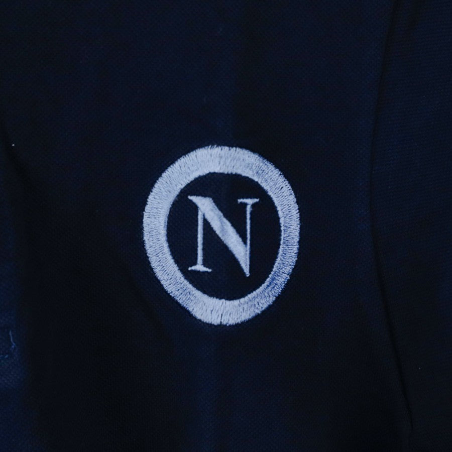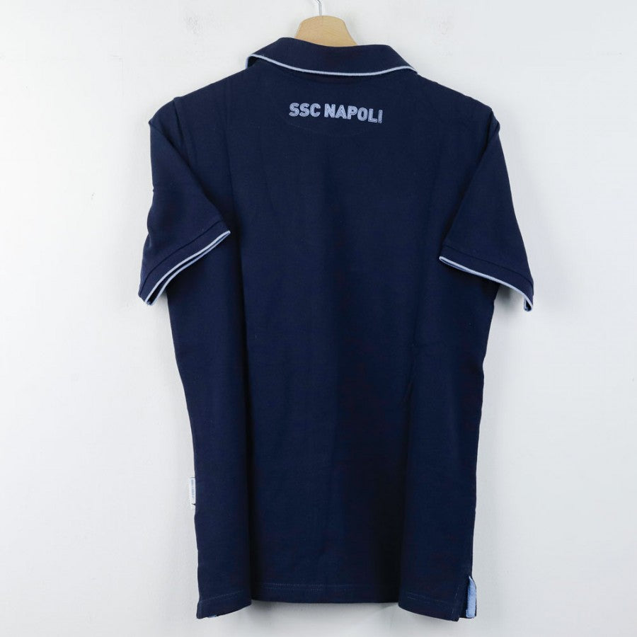 Official SSC Napoli polo from the 2006/2007 season, produced by Diadora. Classic navy blue design with light blue details on the collar and sleeves. The club crest is embroidered on the chest, while the Diadora logo is positioned on the right side. On the back, just below the collar, the inscription "SSC Napoli" is featured. Size not specified.