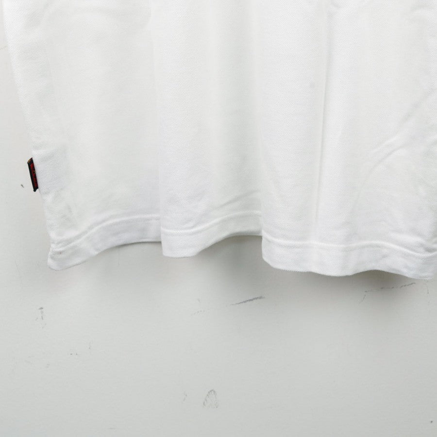 Official AS Roma polo shirt from the 2010/2011 season, produced by technical sponsor Kappa. The design features a white base with yellow collar and sleeve ends, reflecting the club’s colors. The iconic wolf crest is stitched on the left chest, while the Kappa logo is embroidered in orange on the right shoulder. The shirt is short-sleeved with a polo-style collar and partial button closure. Size: XL.