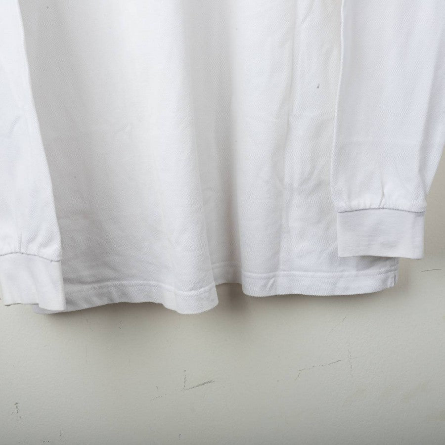 Long sleeve polo shirt of AS Roma made by Kappa for the 2001/2002 season. White color with ribbed maroon collar. Embroidered red Kappa logo on the right chest and classic AS Roma crest with the Capitoline wolf on the left. GAVA tag stitched on the hem. Made of 100% cotton. Loose fit, size XL. A stylish and original vintage piece from the early 2000s, ideal for Roma fans and football collectors.