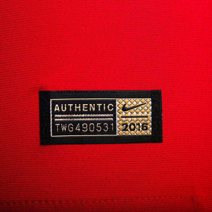 Joao Mario's 2016/2017 vintage Portugal home match shirt. On the front is gummed applied the team logo on the heart side and is applied the Nike logo on the right side. In the center is the patch of the European Champions for their victory at the European Championships, as well as the number 10 printed in small. On the back are printed lettering J. MARIO and number 10 in white plastic. On the front is printed lettering "PORTUGAL/GIBRALTAR 01/09/2016 PORTO" referring to the match in which the uniform was prepared/worn. On the bottom is Nike's Authentic stamp and inside is heat-sealed manufacturer's label.