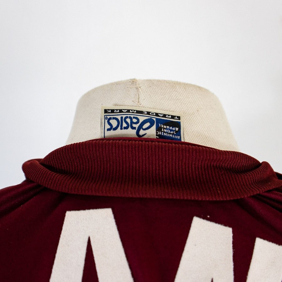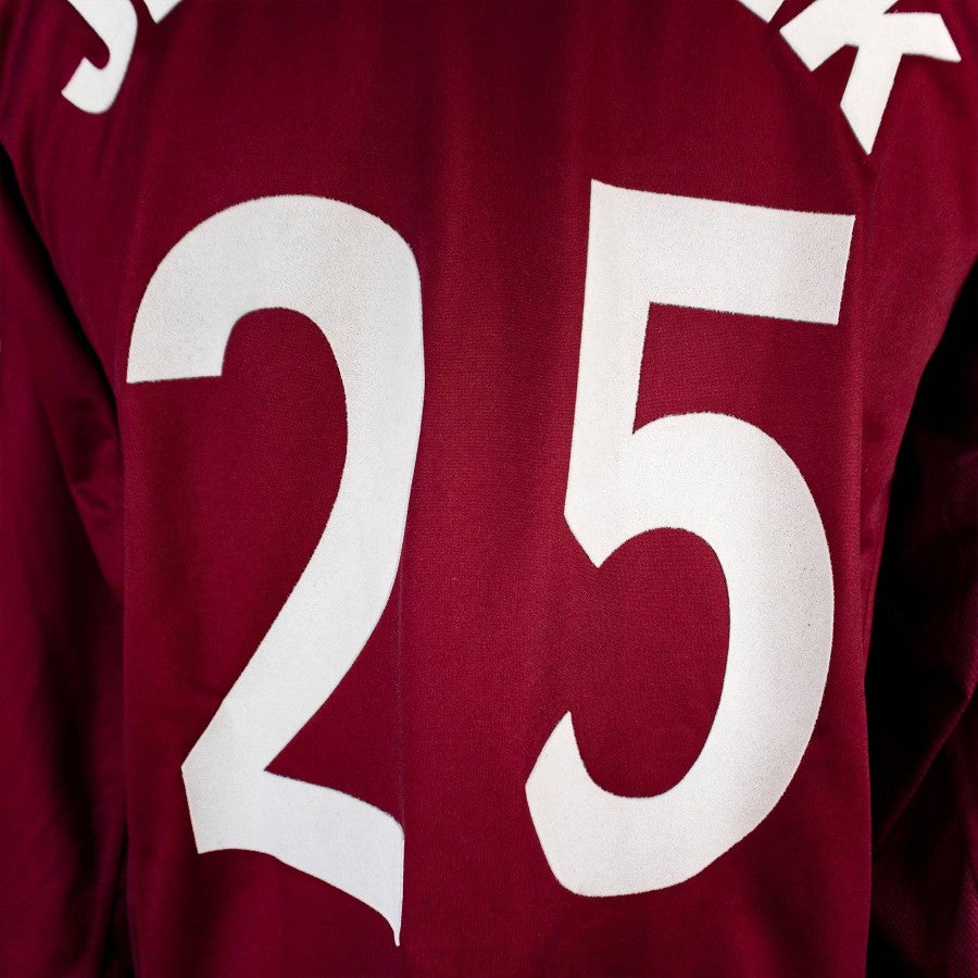 Reggina Asics vintage shirt with Credit Suisse sponsor from the 2003/2004 season with name and number Jiranek 25, with Lega Calcio patch applied on the right sleeve. Classic garnet-colored jersey of the Calabrian team made with breathable insert materials, long-sleeved with ribbed cuffs.