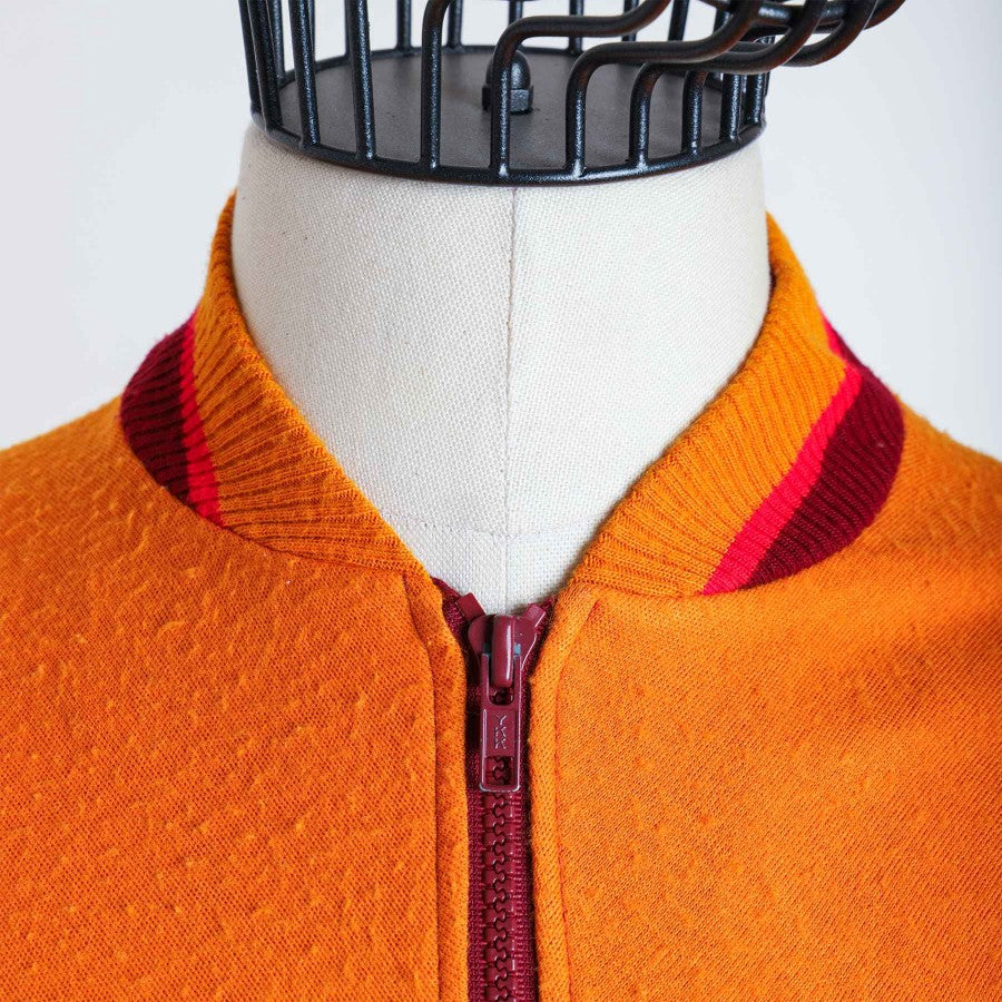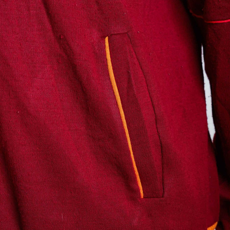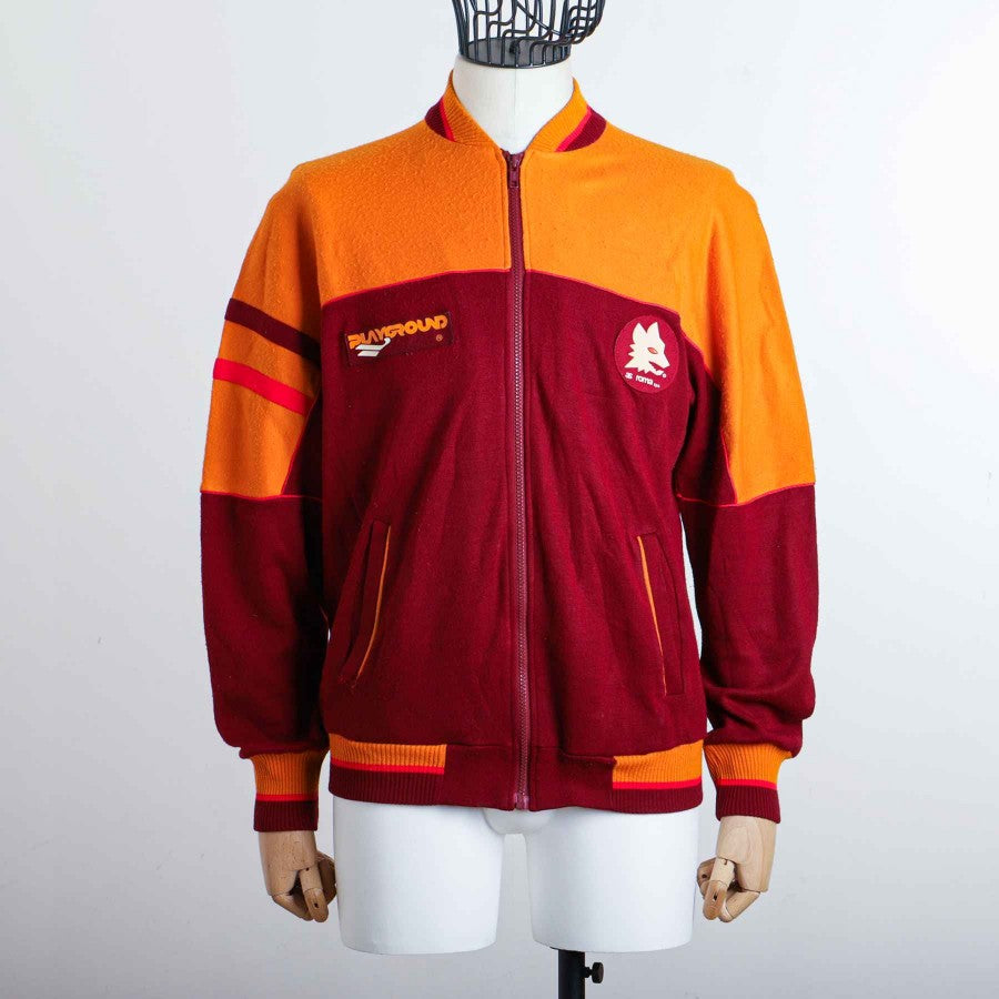 Roma jacket red and orange. On the front are sewn the Roma logo on the heart side and the Playground patch on the right side.