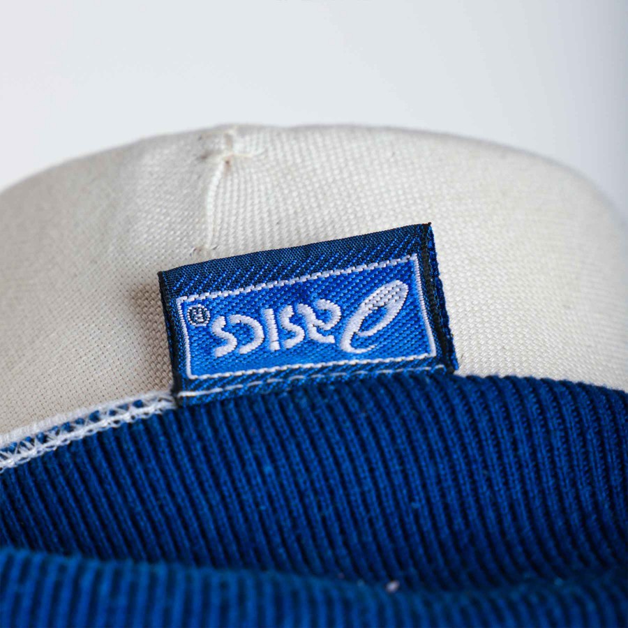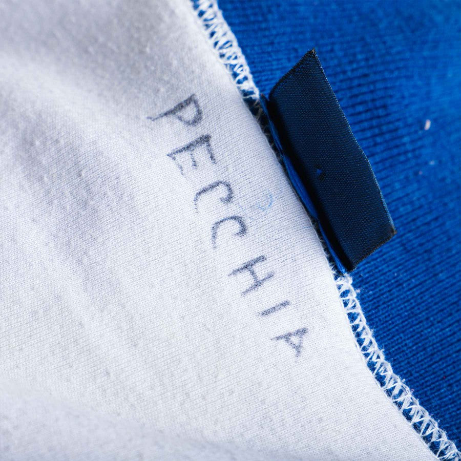 As Roma crest and Asics Sponsor are sewn. INA Assitalia sponsor painted in white. Asics band in orange on the shoulders. Dark blue and white color. Inside the collar is written in pen "Pecchia".