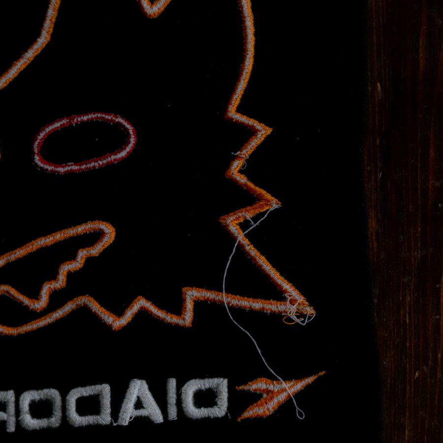 Official AS Roma scarf for the 1998/1999 season, produced by technical sponsor Diadora. This black scarf features the Diadora logo in white and orange, along with a large image of the she-wolf emblem in orange with red details. The word "Roma" stands out at the top, a nod to the pride of Roma fans. A perfect accessory for fans to show their support, especially during the chilly winter months.