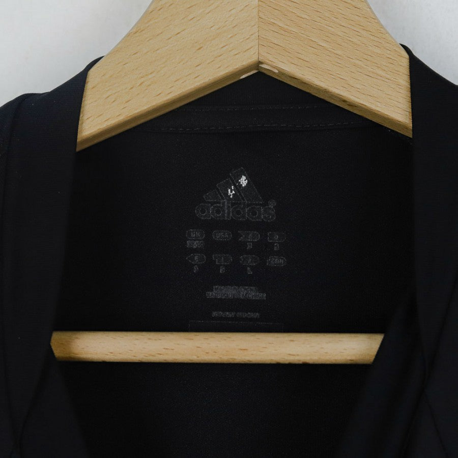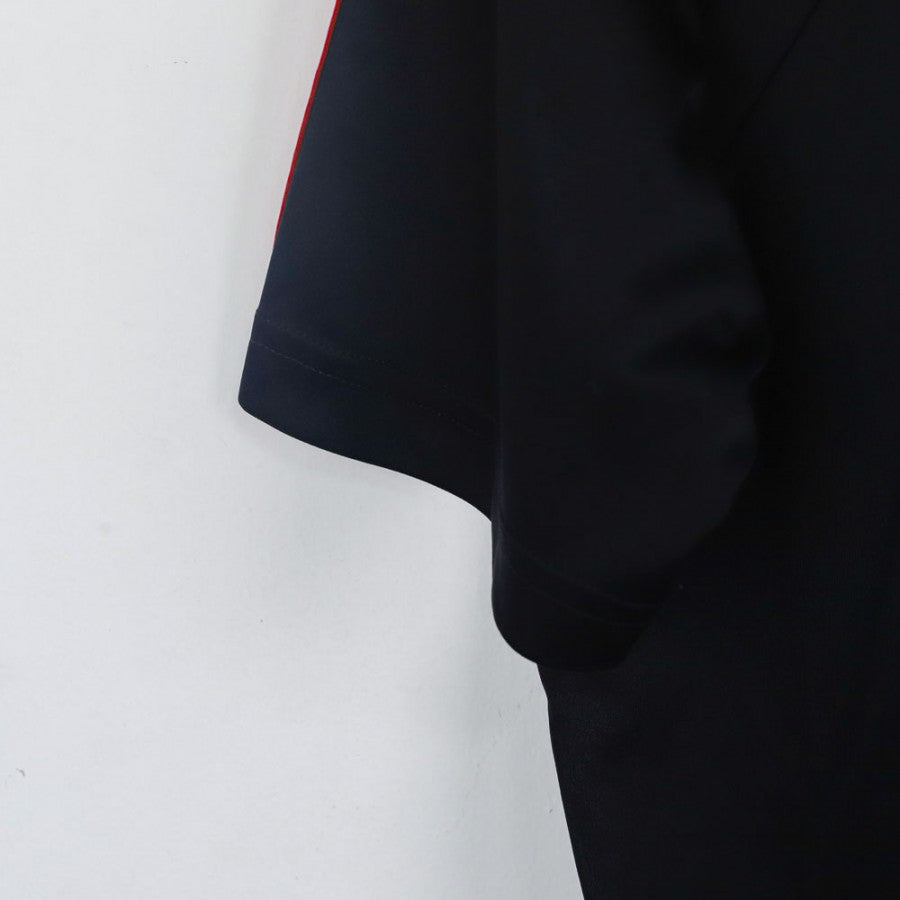 Official AC Milan training shirt from the 2008/2009 season, produced by technical sponsor Adidas and featuring commercial sponsor Bwin. The shirt is black with red details on the shoulders and Adidas’ iconic three stripes along the sleeves. The Milan crest is applied on the left chest, while the Adidas logo is on the right. The back prominently features both the Bwin and Adidas logos. Made with ClimaCool technology for breathability and comfort during training sessions.