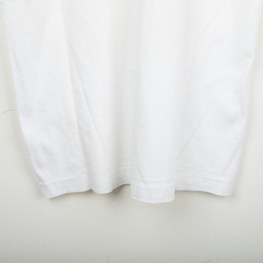 Juventus T-shirt made by Kappa for the 1995/1996 season. White base with large black “JUVENTUS” print on the chest, black Kappa logo, and Sony sponsor patch stitched on the right chest. Club crest with two golden stars and Italian tricolour shield on the sleeve. Additional Kappa logo on the upper back. Official Kappa “Gara” line. Size M.