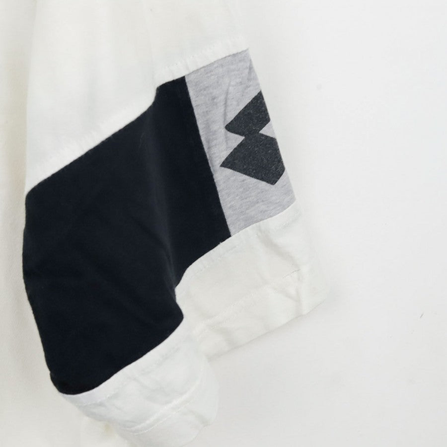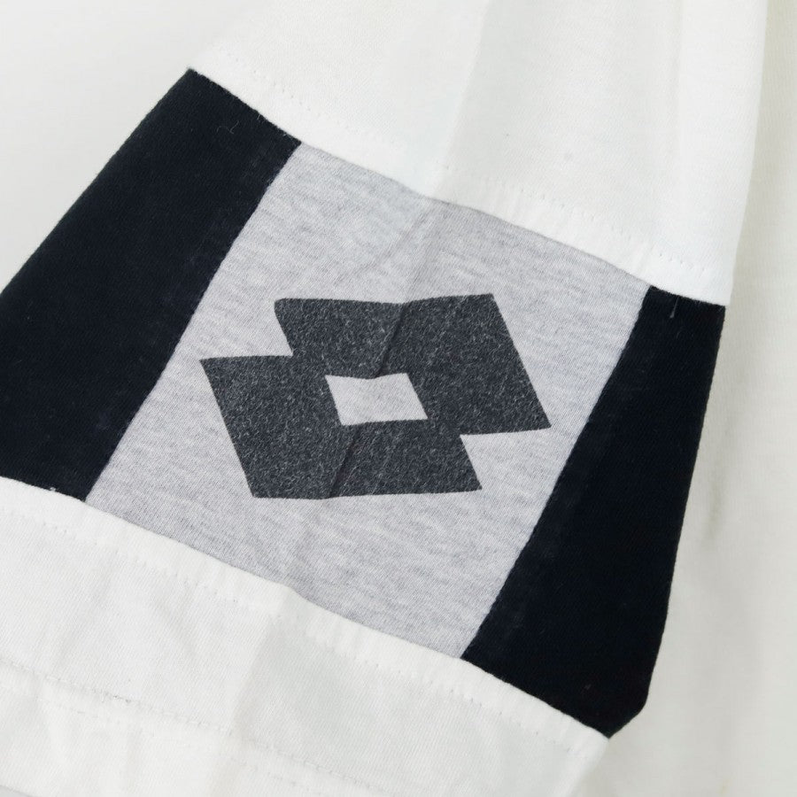 Official Juventus T-shirt from the 2001/2002 season, produced by technical sponsor Lotto. The design features a white base with black details on the shoulders and sleeves. On the chest, the Lotto logo is embroidered on the right side, while the Juventus crest is stitched on the left. Centrally, the commercial sponsor Fastweb is printed in black. The shirt has short sleeves with a crew neck and is made of lightweight fabric, ideal for training sessions or casual wear. Size is XL.
