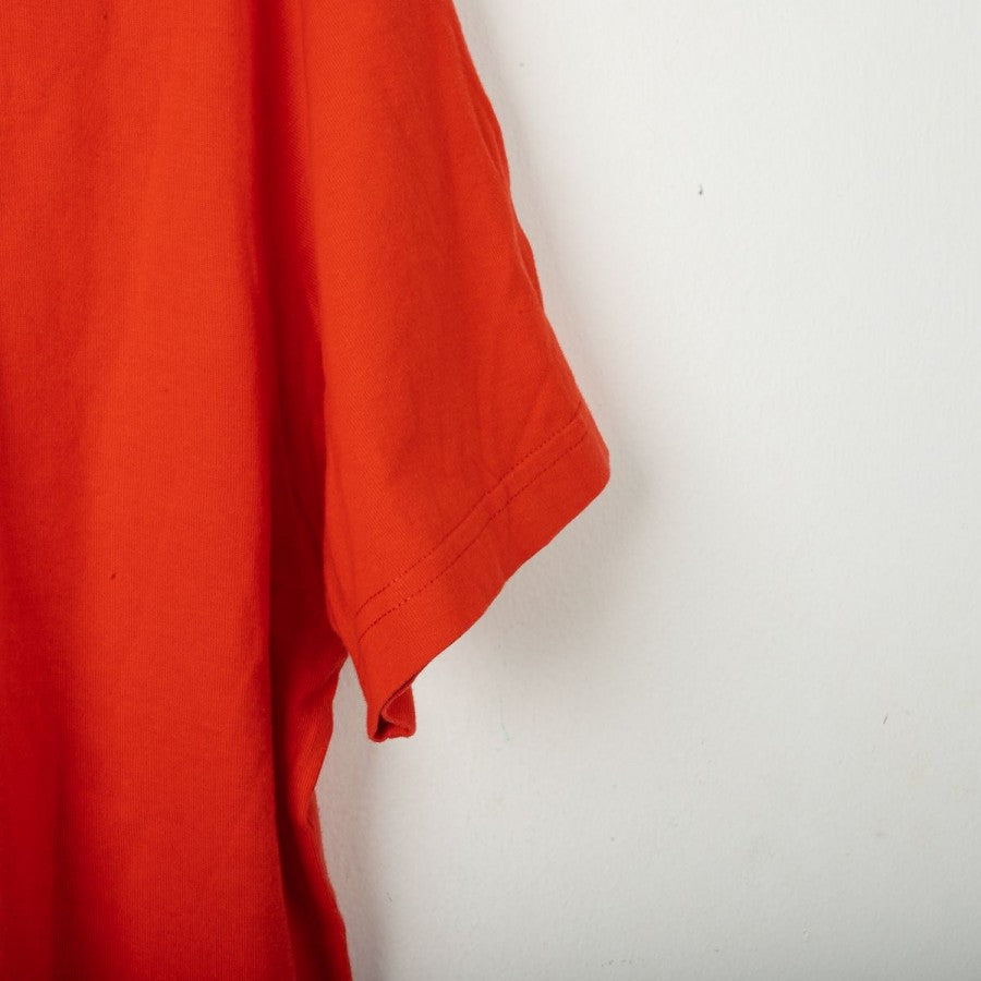 2007/2008 Juventus T-shirt by Nike. Fully orange with central club crest, “Bianconeri” script and Nike swoosh underneath. A minimalist cut with short sleeves. Size M.