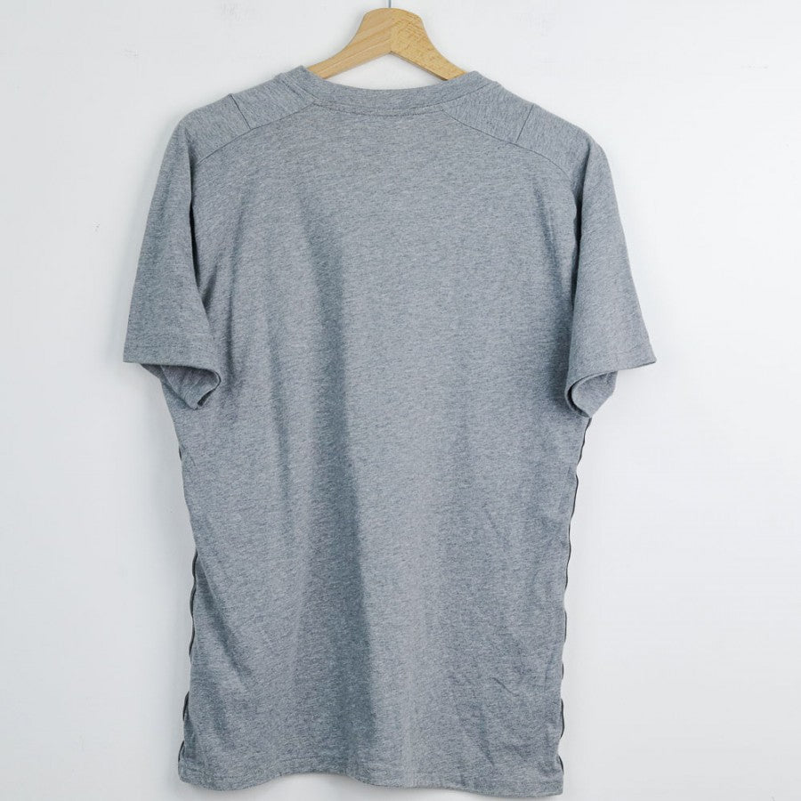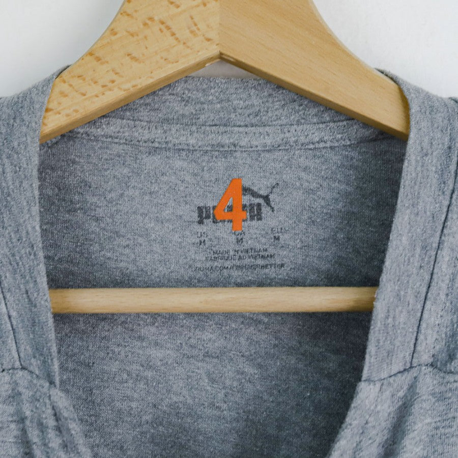 Sassuolo training t-shirt for the 2024/2025 season made by Puma. This grey shirt features the Puma technical sponsor logo on the chest and the official club crest in green and black. The shirt is size M, as shown on the inner collar. A simple and functional item, perfect for collectors or fans of clean, modern design.