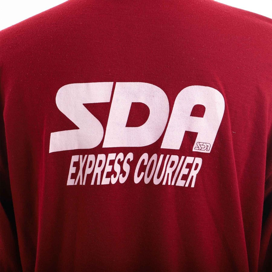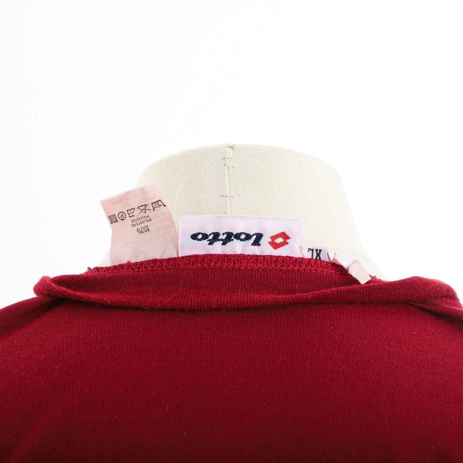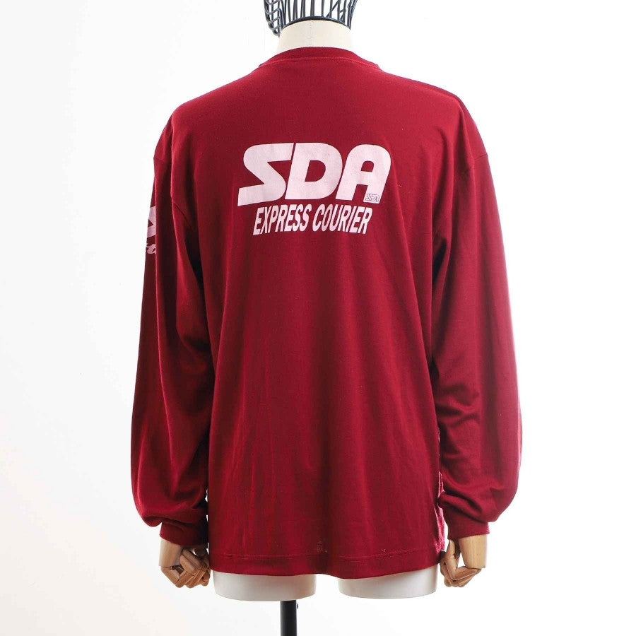Long-sleeved training shirt used by Torino in the 1995/1996 season. Totally grenade-colored, it presents the sewn logo of Torino on the heart side and the screen-printed logo of Lotto on the right side. Both on the front and on the back we find the logo of the commercial sponsor SDA.