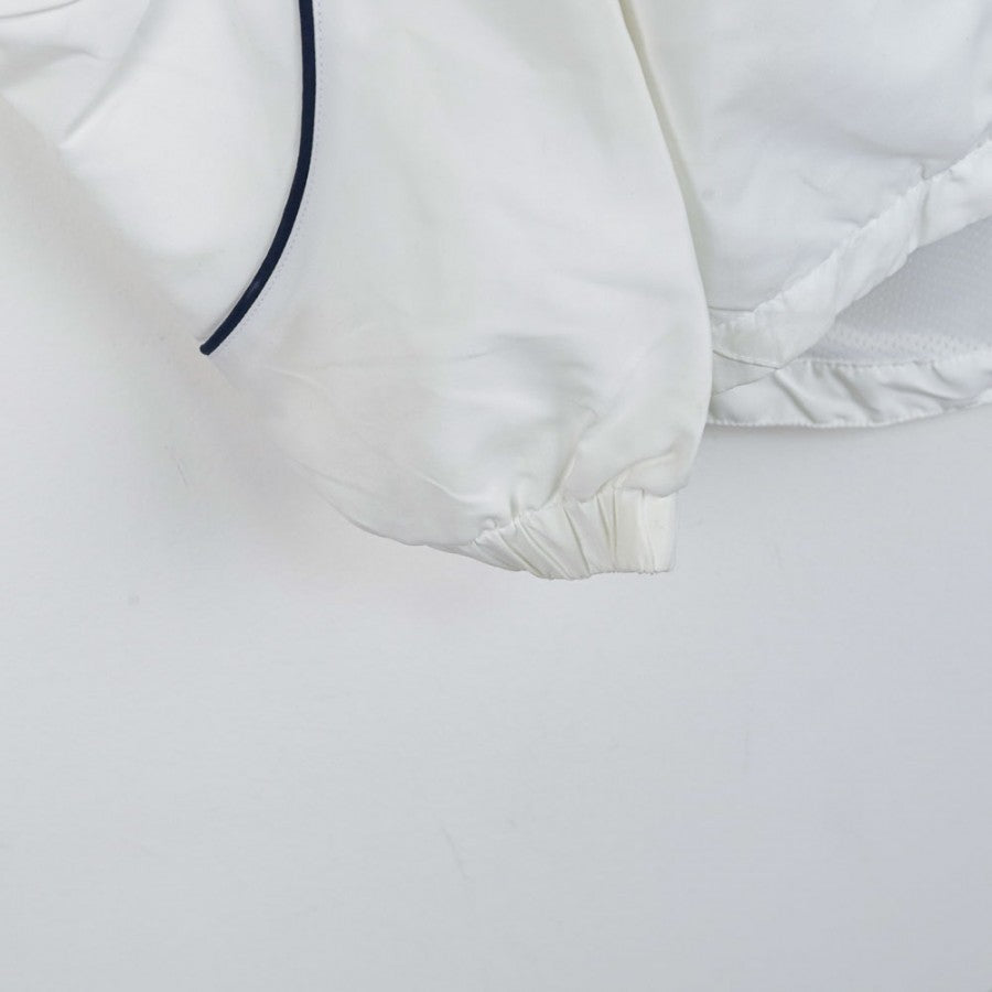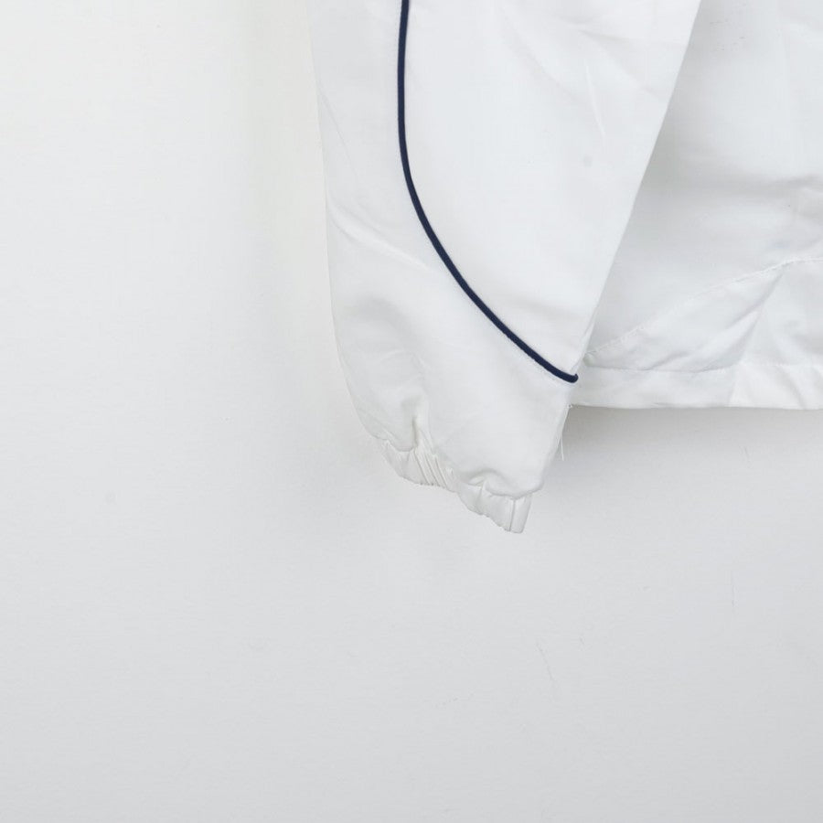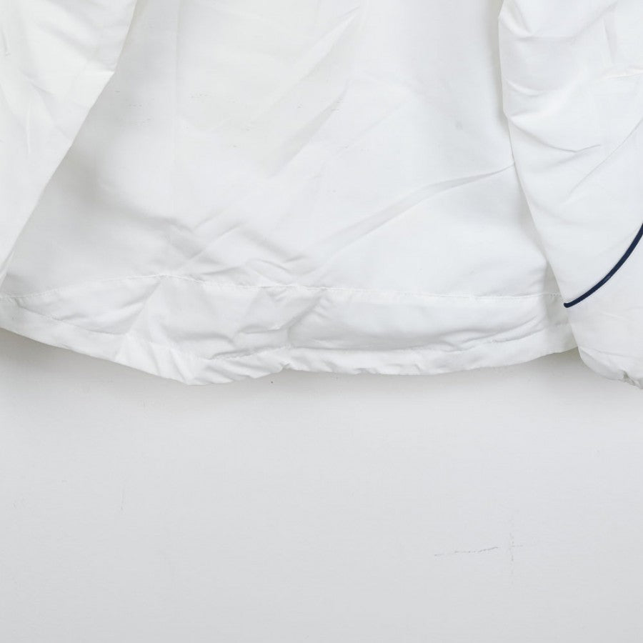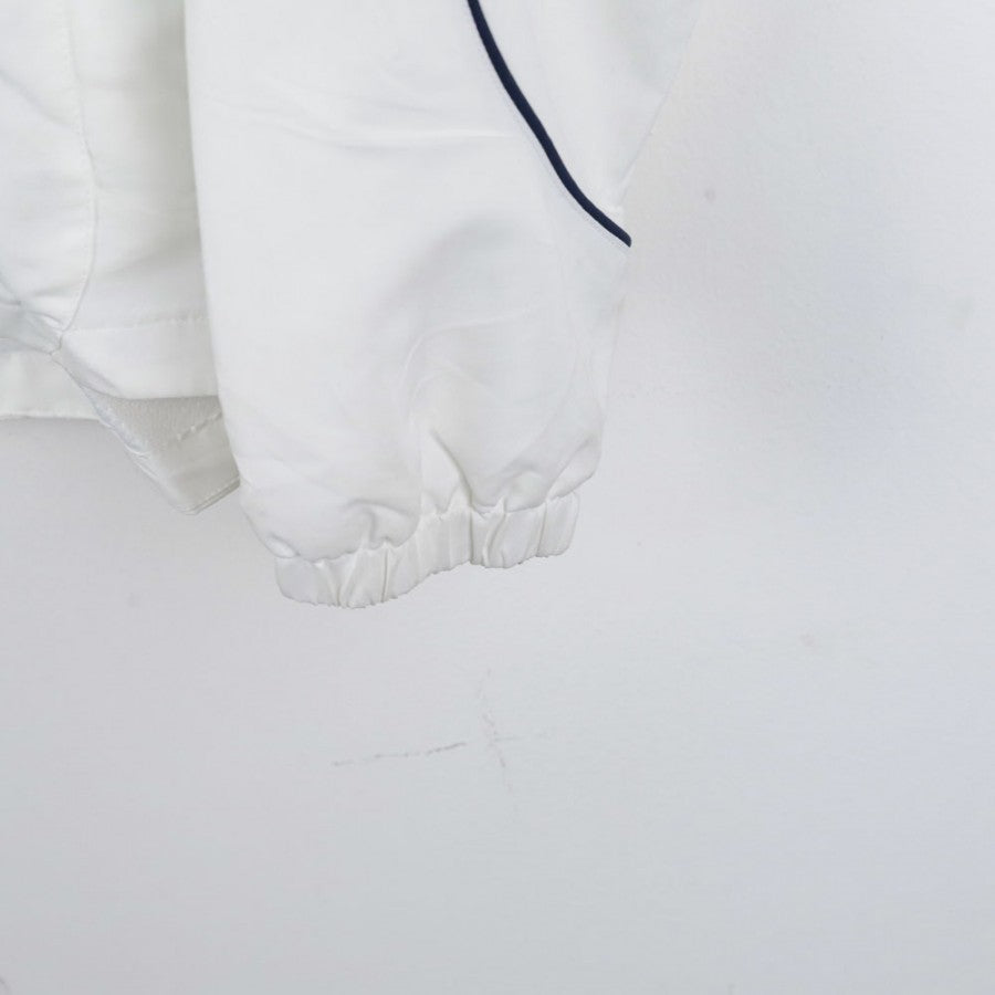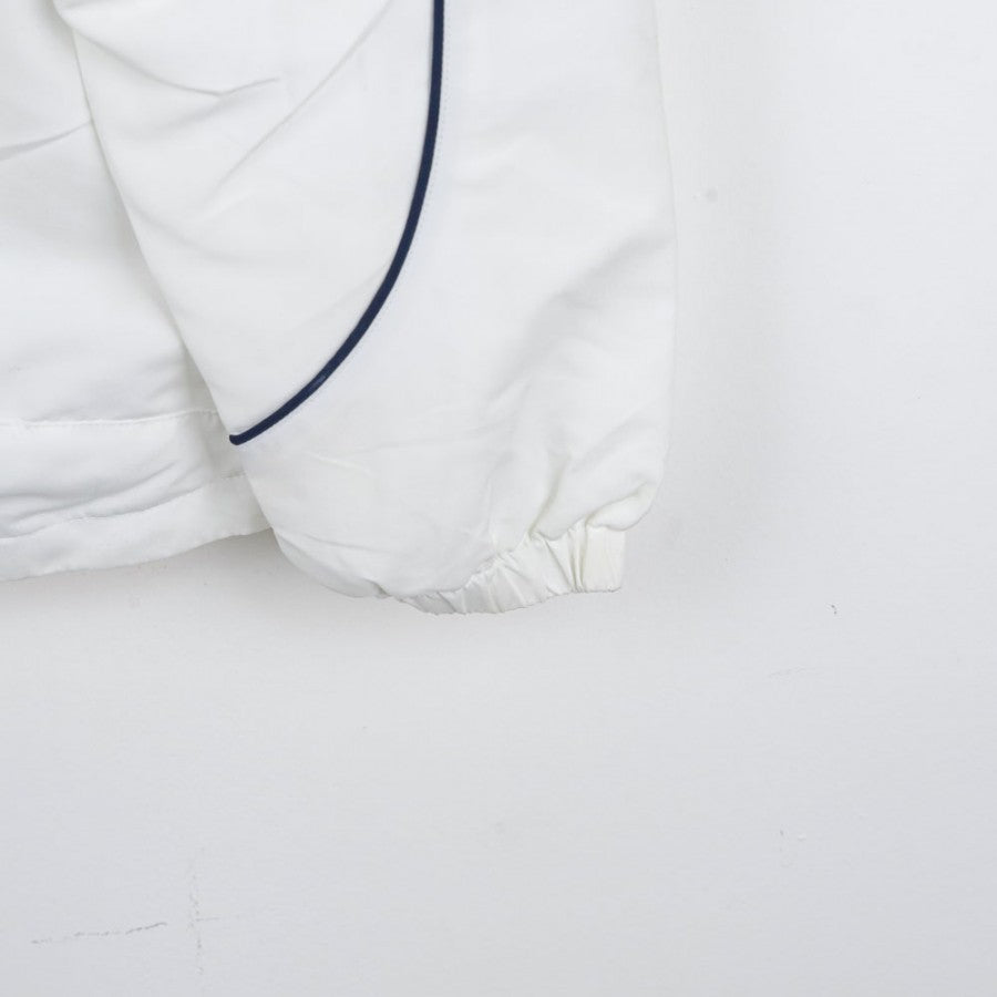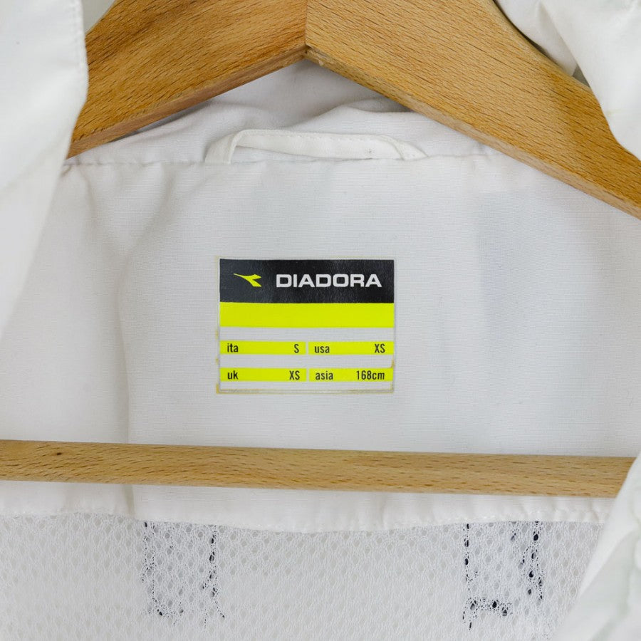Official SSC Napoli tracksuit for the 2007/2008 season, manufactured by technical sponsor Diadora. The jacket is white with blue details, featuring the Diadora logo on the right chest and the "SSC Napoli" lettering with the team logo on the left side. The pants, in dark blue, are decorated with a small SSC Napoli emblem on the leg. This tracksuit, in size S, symbolizes an important era for Napoli, recently promoted back to Serie A and aiming for stability in Italy’s top division.