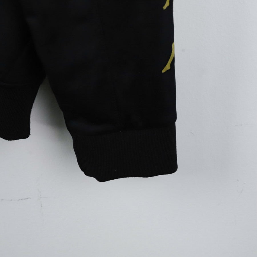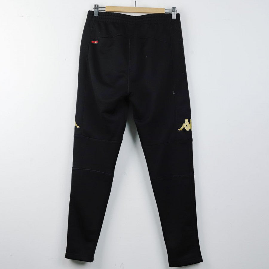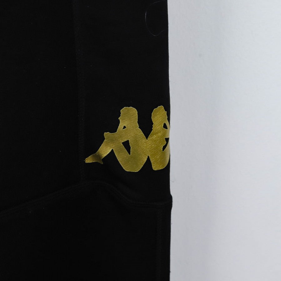 Official SSC Napoli tracksuit from the 2016/2017 season, produced by Kappa. The set includes a black jacket and matching pants with gold details. The jacket features the embroidered "SSC Napoli" inscription in blue on the back, while the iconic Kappa tape with repeated yellow logos runs along the sleeves and pant legs. The Napoli crest is applied on the chest and pants, while the Kappa logo is embroidered on the right chest. Slim-fit model, size L.