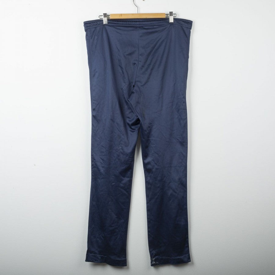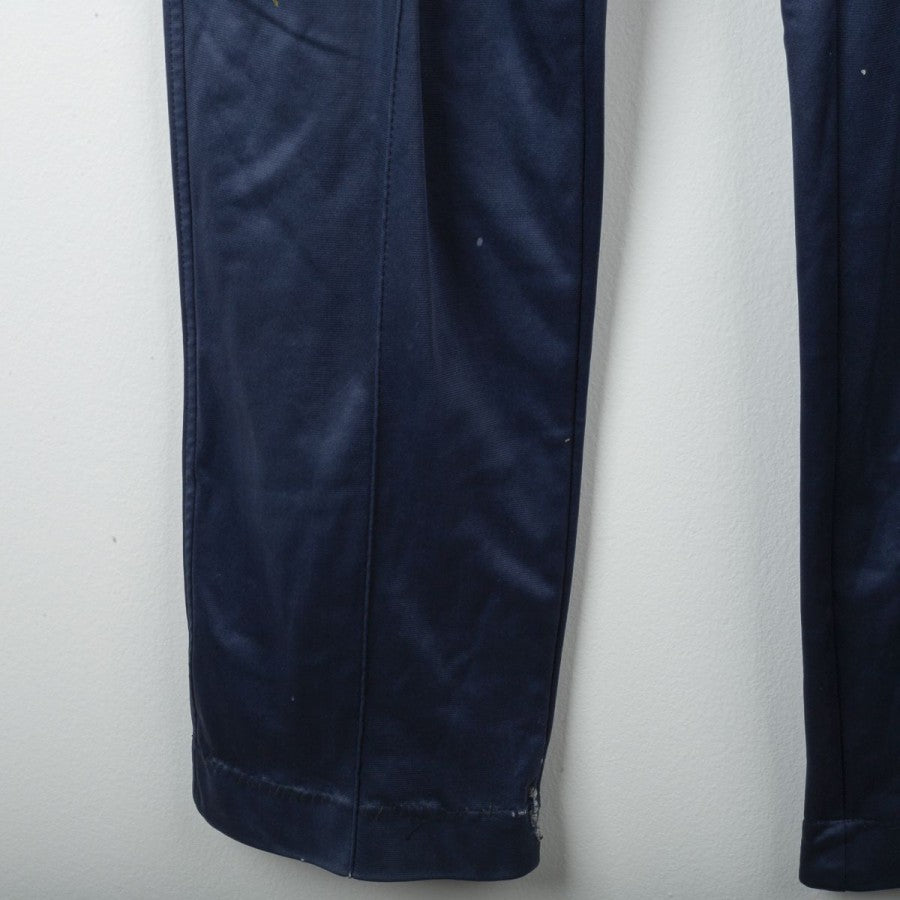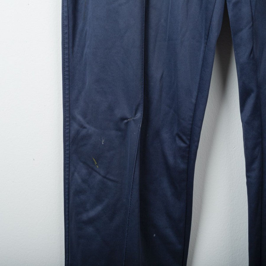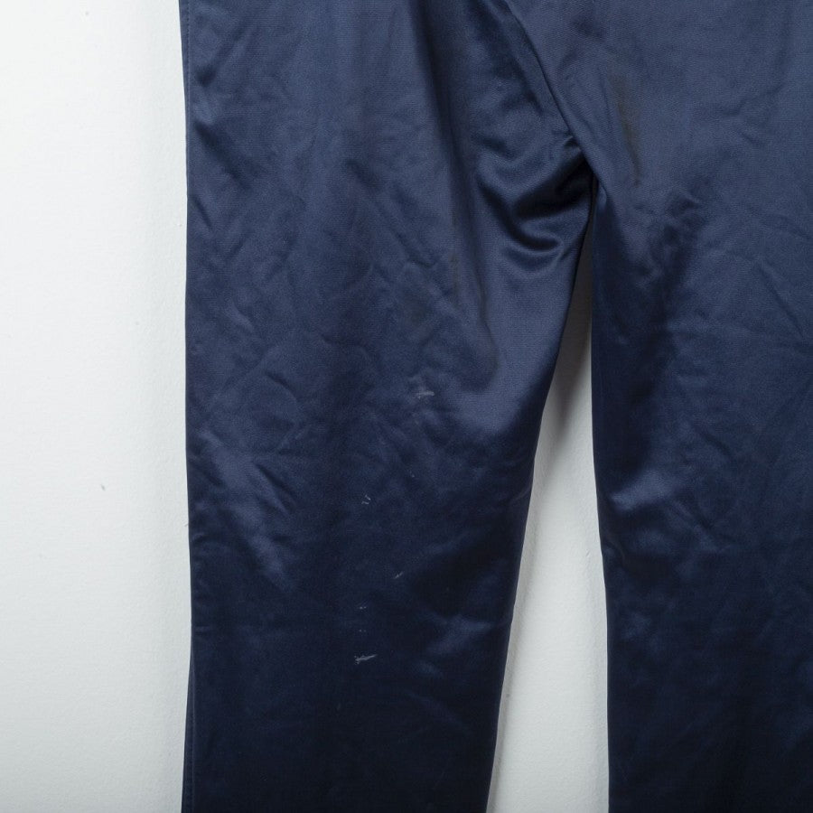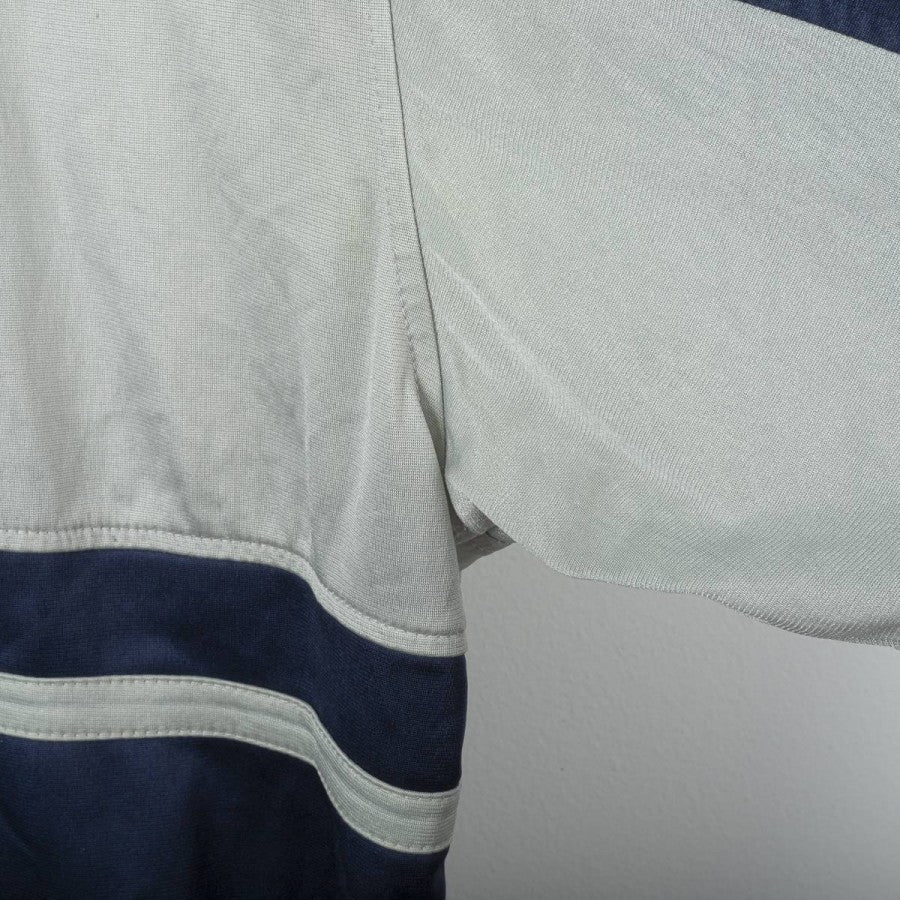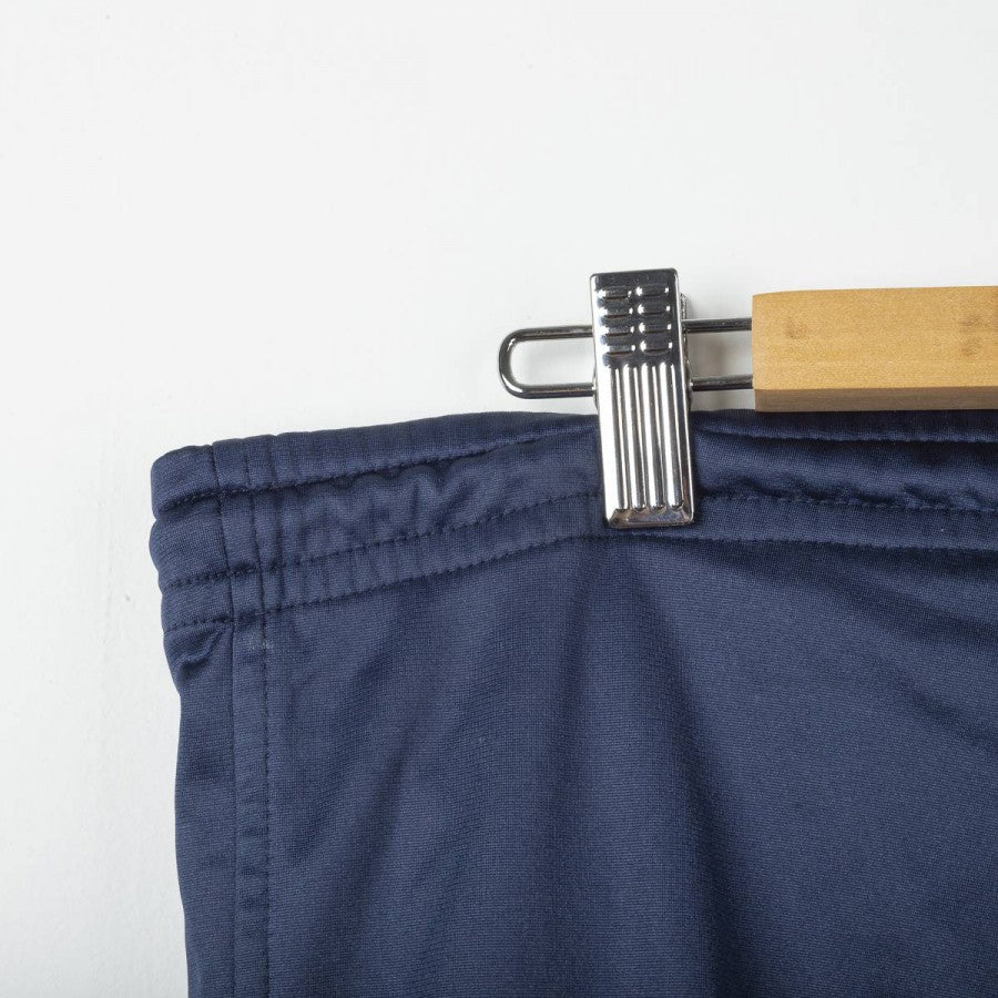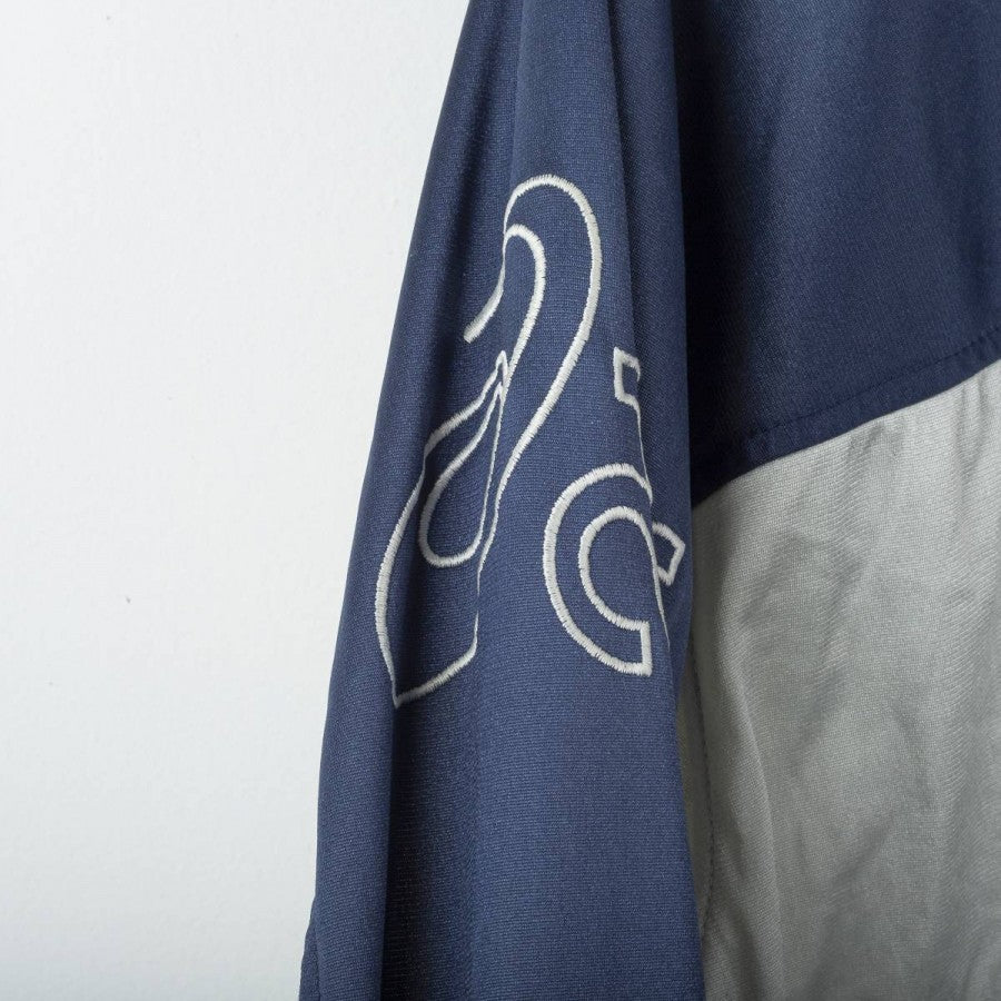 Asics Salernitana tracksuit from the 1997/1998 season. Navy blue and grey model with white details. Full-zip jacket with side pockets and adjustable drawstring waist. Embroidered U.S. Salernitana 1919 crest on the chest and Asics logo on the right side. Asics logos also featured on the sleeve and back. Matching navy blue trousers with embroidered Asics logo on the leg. Medium Size.