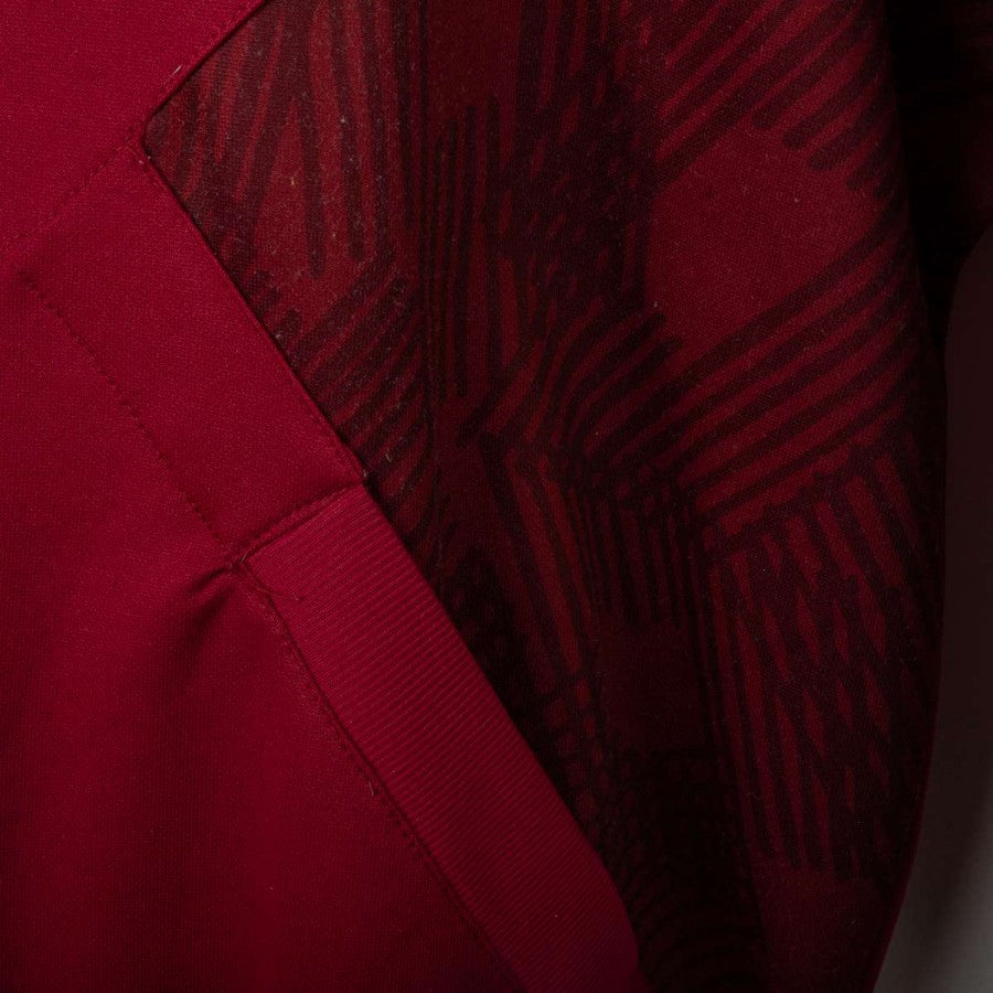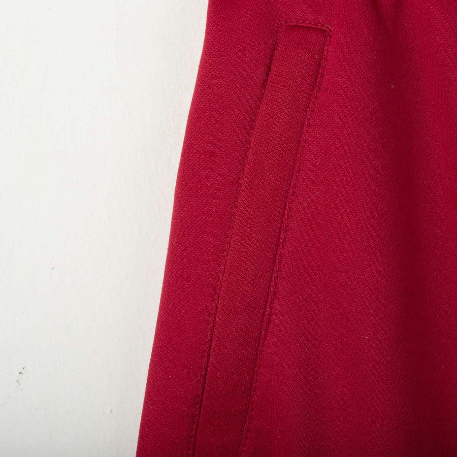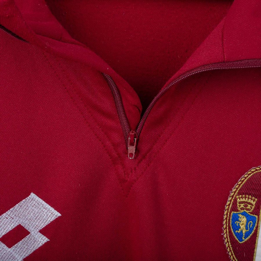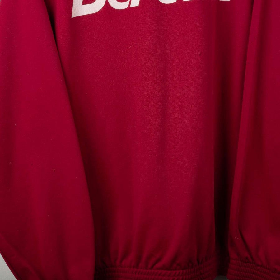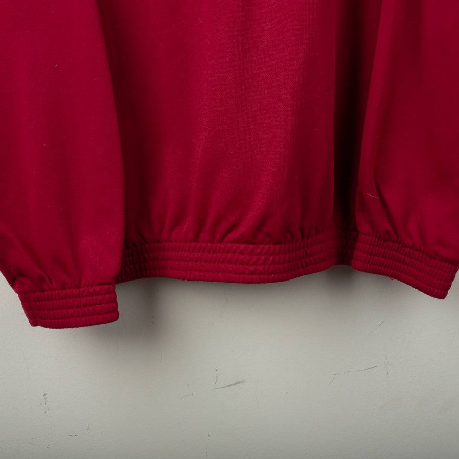 Official Torino tracksuit from the 1994/1995 season, made by Lotto. Set includes sweatshirt and pants in granata red with white inserts. Embroidered Lotto logo and Beretta sponsor on front and back of the top. Torino crest stitched on chest in oval shape, half white and half granata. Short front zip and relaxed fit. Size L.