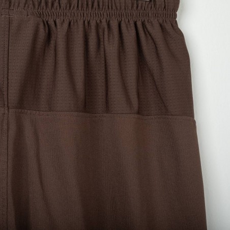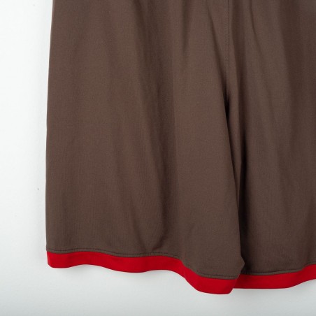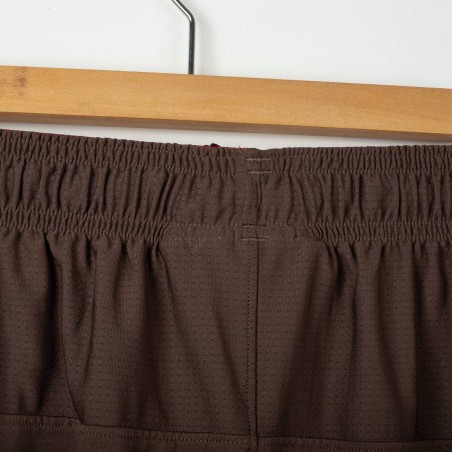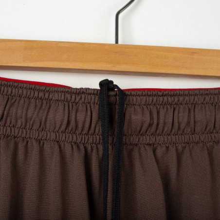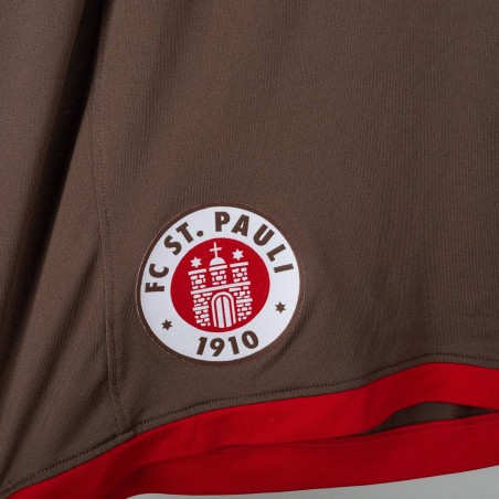 Official FC St. Pauli home shorts from the 2017/2018 season, made by Under Armour. Brown design with red trim on the bottom hem. Club crest stitched on the right leg, Under Armour logo embroidered on the left under the printed white number 3. Elastic waistband with adjustable drawstring and red inner band featuring "Under Armour" branding. HeatGear technology ensures lightness, breathability, and comfort. Regular fit. Medium Size.