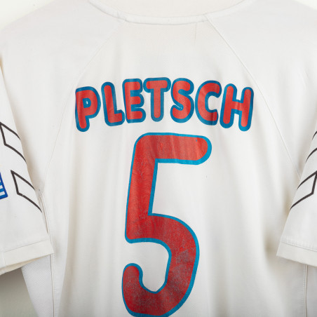 Panionios away shirt from the 2007/2008 season, worn during the UEFA Cup campaign and made by Hummel. Navy blue with red and white details. Embroidered Hummel logo on the right chest, stitched Panionios club crest on the left. “LG” main sponsor in flock velvet texture, typical of 2000s kits. Signature Hummel chevrons on the sleeves and red sleeve trim. Regular fit. Size XXL.