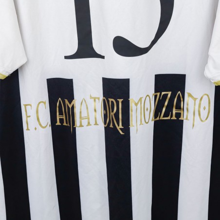 The black and white striped jersey with gold details features the club crest on the left chest, Legea as the technical sponsor, and La Locandiera Ristorante as the commercial sponsor.