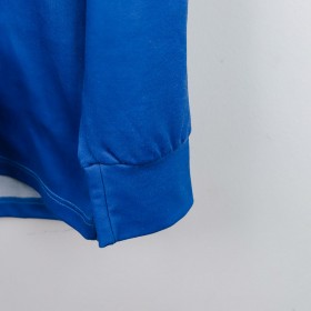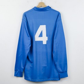 The official Brescia Calcio Home jersey for the 1991/1992 season, produced by technical sponsor Uhlsport, is a true classic of '90s football. Made in a stylish blue color, it features a distinctive design with a large white gradient "V" on the chest that frames the "CAB" commercial sponsor logo. The Brescia Calcio crest, with the lion rampant, is applied on the left chest, while the back displays the number 4 in simple white font. This long-sleeved jersey is in size XL, making it perfect for collectors and fans of the Rondinelle.