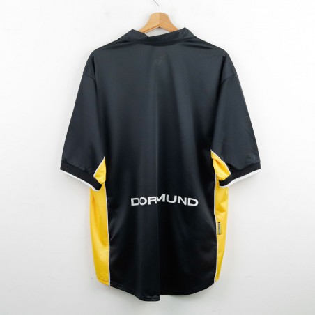 1998/1999 Away Borussia Dortmund Shirt made by Nike. This away jersey features the iconic yellow and black colors of BVB with white details, and displays the Nike technical sponsor and main sponsor s.Oliver on the chest. The word “Dortmund” is featured on the lower back, a unique touch from the era. Size L is shown on the inner label.