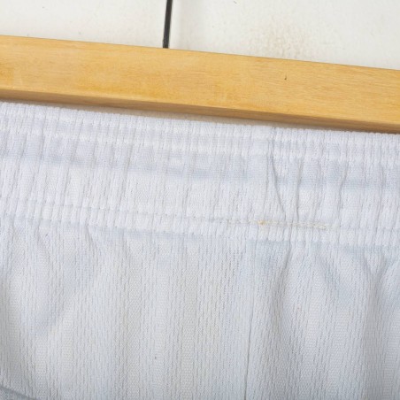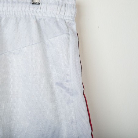 VfB Stuttgart home shorts from the 1998/1999 season, made by Adidas. White base with red side stripes and black trim. Embroidered Adidas logo on the right leg and stitched VfB Stuttgart crest on the left. Regular fit. Size M.