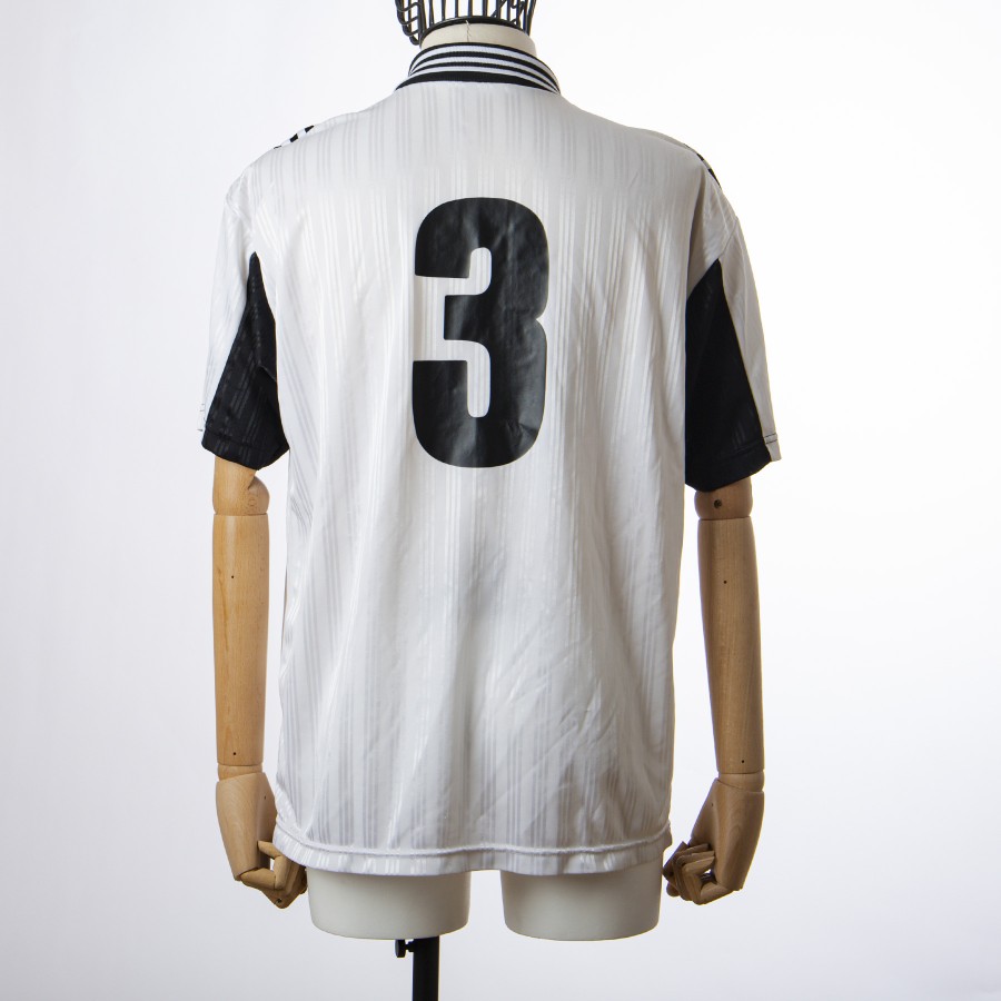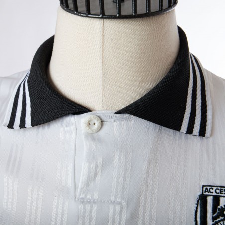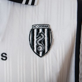 The AC Cesena jersey is kept in excellent condition. The black and white colours are bright and the fabric is soft and cool to the touch. Black collar with white piping