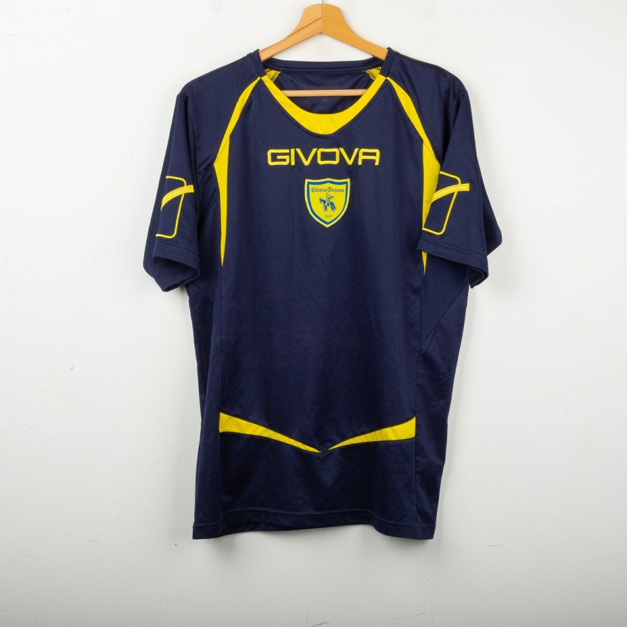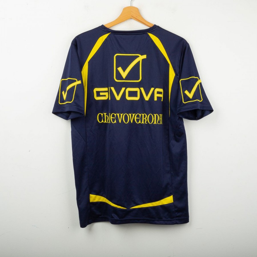 Official Chievo Verona training t-shirt made by Givova for the 2009/2010 season. Lightweight navy blue technical fabric with yellow inserts. Embroidered Givova logo on the chest above the stitched club crest. Large Givova logo and "Chievo Verona" lettering in yellow on the back.