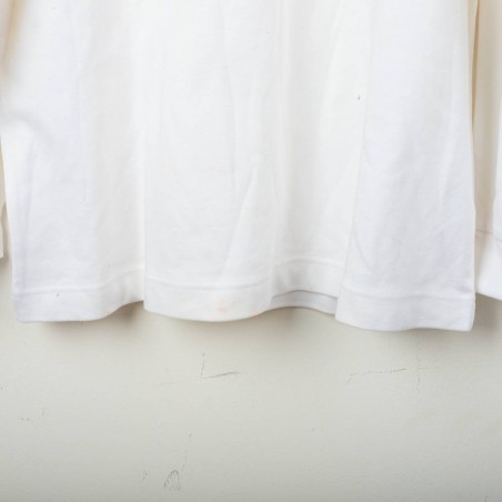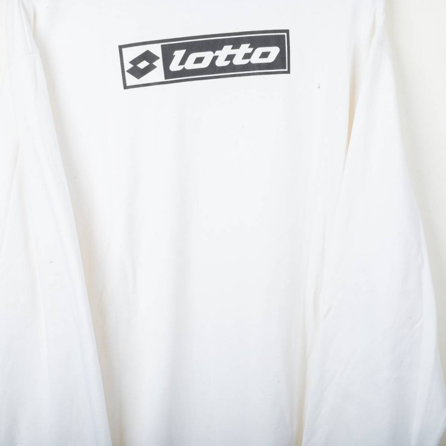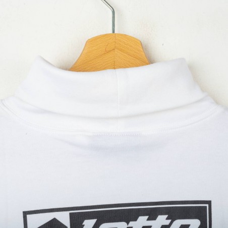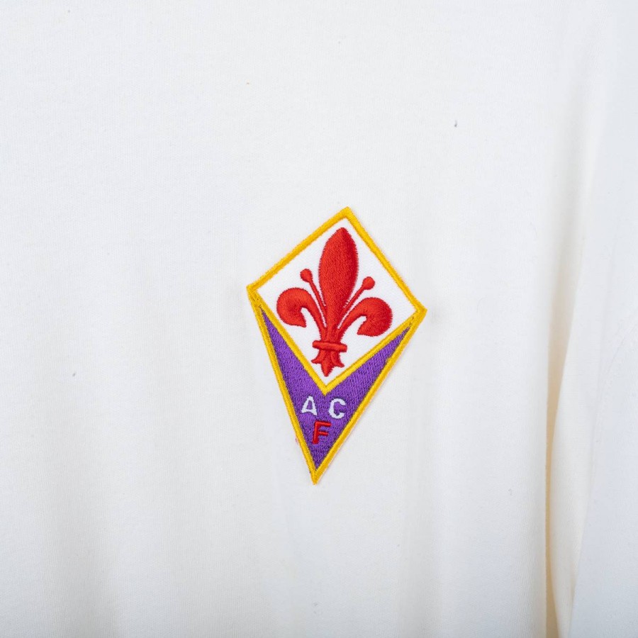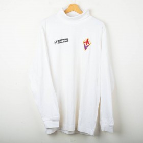 Long-sleeve turtleneck shirt from Fiorentina, made by Lotto. Thick white cotton with high collar. Printed Lotto logos on chest and back, Fiorentina crest stitched on the left chest. Size XL with a relaxed fit.