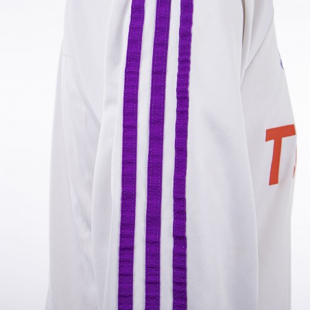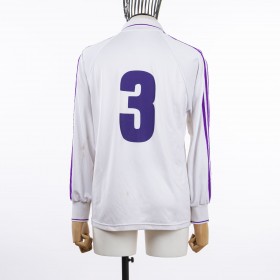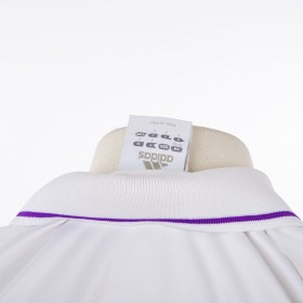 The shirt is white in color with a stylish stand collar. The Adidas logo is embroidered on the right side with the iconic side bands, while the Fiorentina crest is sewn on the heart side. Below, in red, we find the thermo-applied Toyota commercial sponsor. The number 3 is personalized on the back of the shirt.