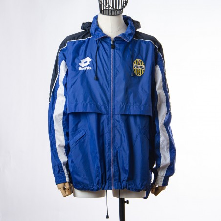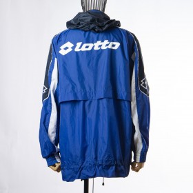 Waterproof full zipper model manufactured by Lotto. Adjustable hood concealed in collar. Side zippered pockets and adjustable drawstring at waist as well. Club patch is sewn on heart side, while Lotto technical sponsor logos are in embroidery.