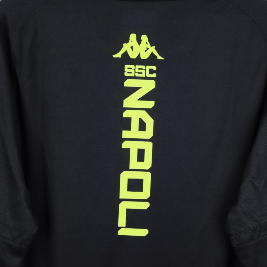 The black long sleeve jersey with red details features the club crest on the left chest, Kappa as the technical sponsor, and 'SSC NAPOLI' lettering on the back.